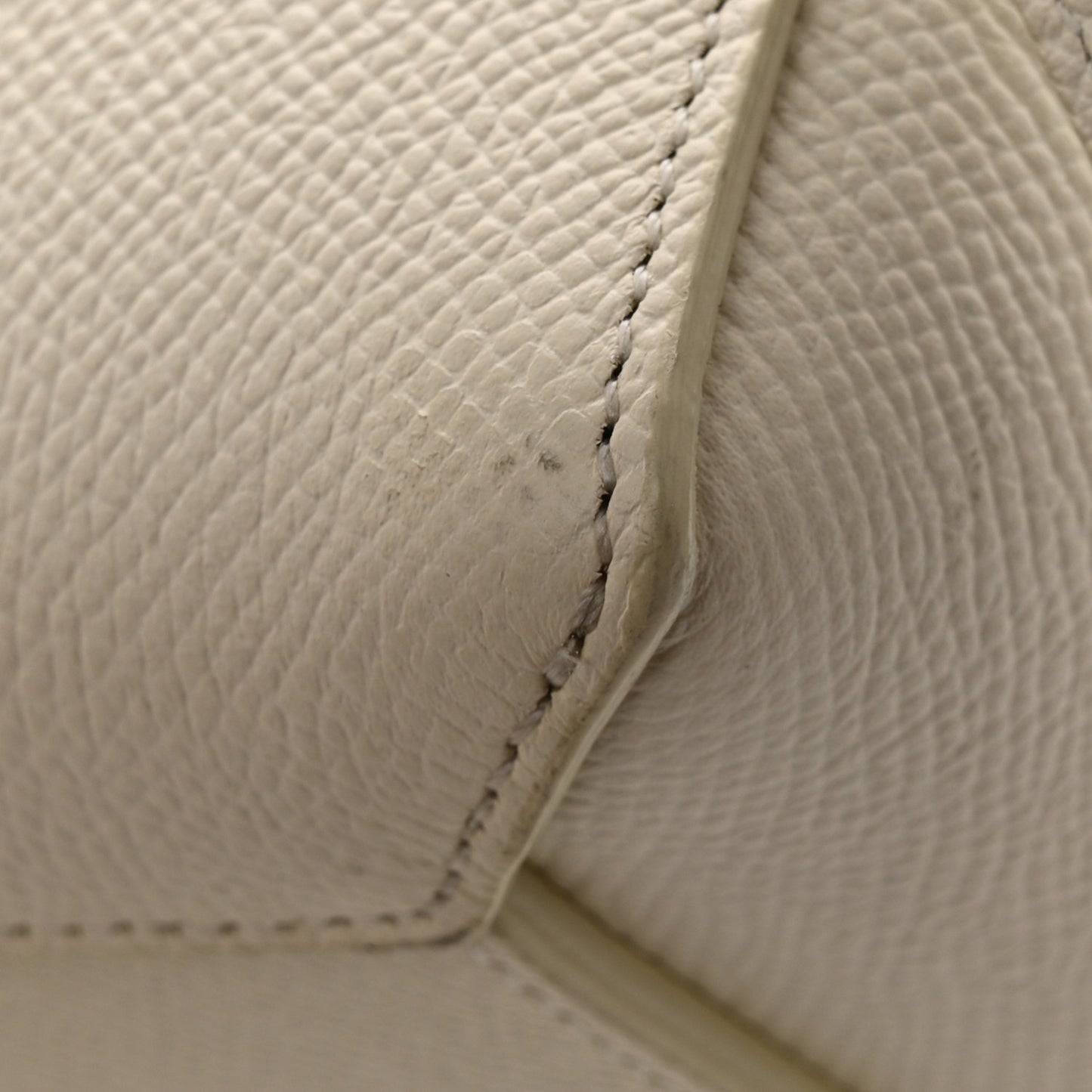 This is an authentic CELINE Grained Calfskin Nano Belt Bag in Chalk. This chic handbag is crafted of rich grained calfskin leather in off white with a structured and spacious silhouette. This shoulder bag features a leather top handle strap, an optional shoulder strap, and gold clasps.Follow this item for alerts. Celine is a registered trademark of Celine. FASHIONPHILE is not affiliated with Celine.
