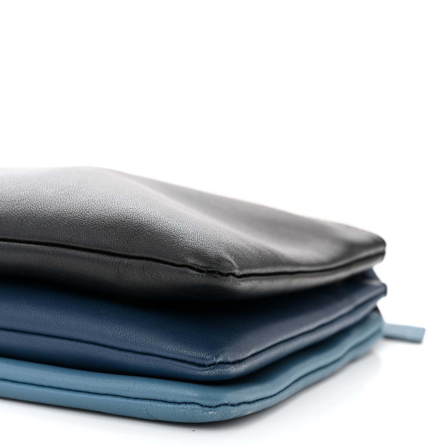 This authentic CELINE Lambskin Small Trio Crossbody Bag in Black and Blue. This crossbody bag is crafted of supple lambskin leather in black and two shades of blue. It features an adjustable crossbody strap, gold-tone hardware, and three compartments that unzip to a soft fabric interior.Follow this item for alerts. Celine is a registered trademark of Celine. FASHIONPHILE is not affiliated with Celine.