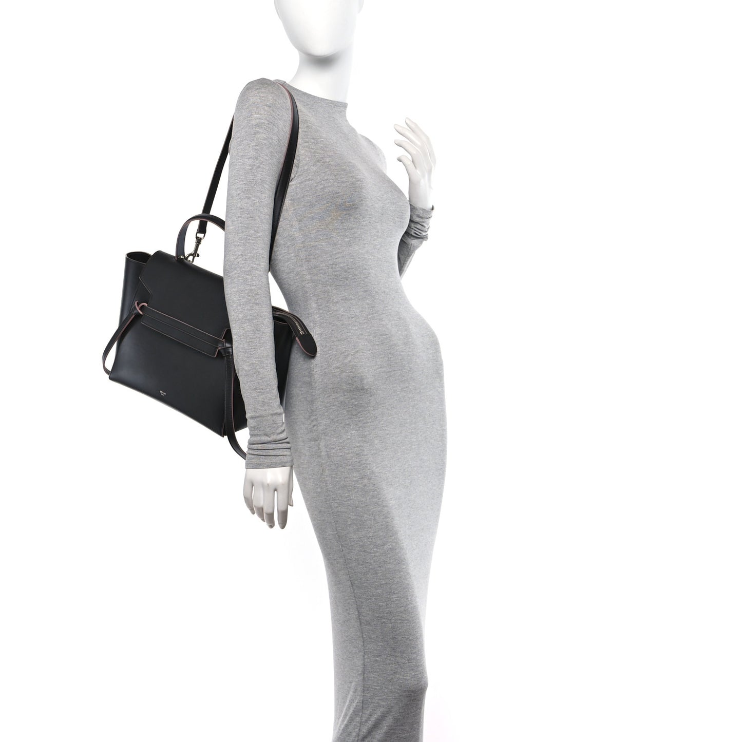 This is an authentic CELINE Palmelato Calfskin Mini Belt Bag in Espresso. This chic tote is crafted of smooth calfskin leather with a structured and spacious silhouette in dark brown with pink resin trim. The shoulder bag features a leather strap top handle and an optional shoulder strap with polished silver clasps. The facing flap opens to the polished silver top zipper with an adjustable strap to a matching leather interior with a hanging patch pocket panel.Follow this item for alerts. Celine is a registered trademark of Celine. FASHIONPHILE is not affiliated with Celine.