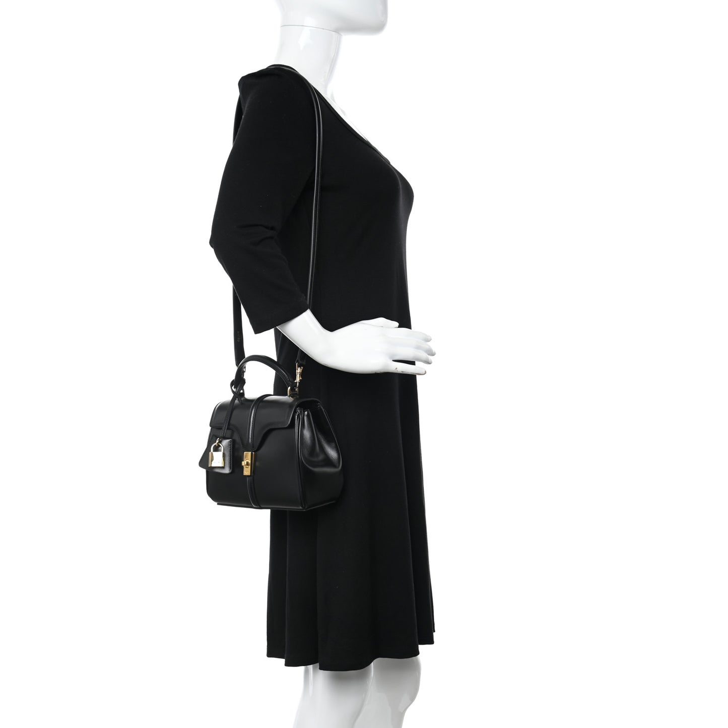 Satinated Calfskin Mini 16 Top Handle Bag Black