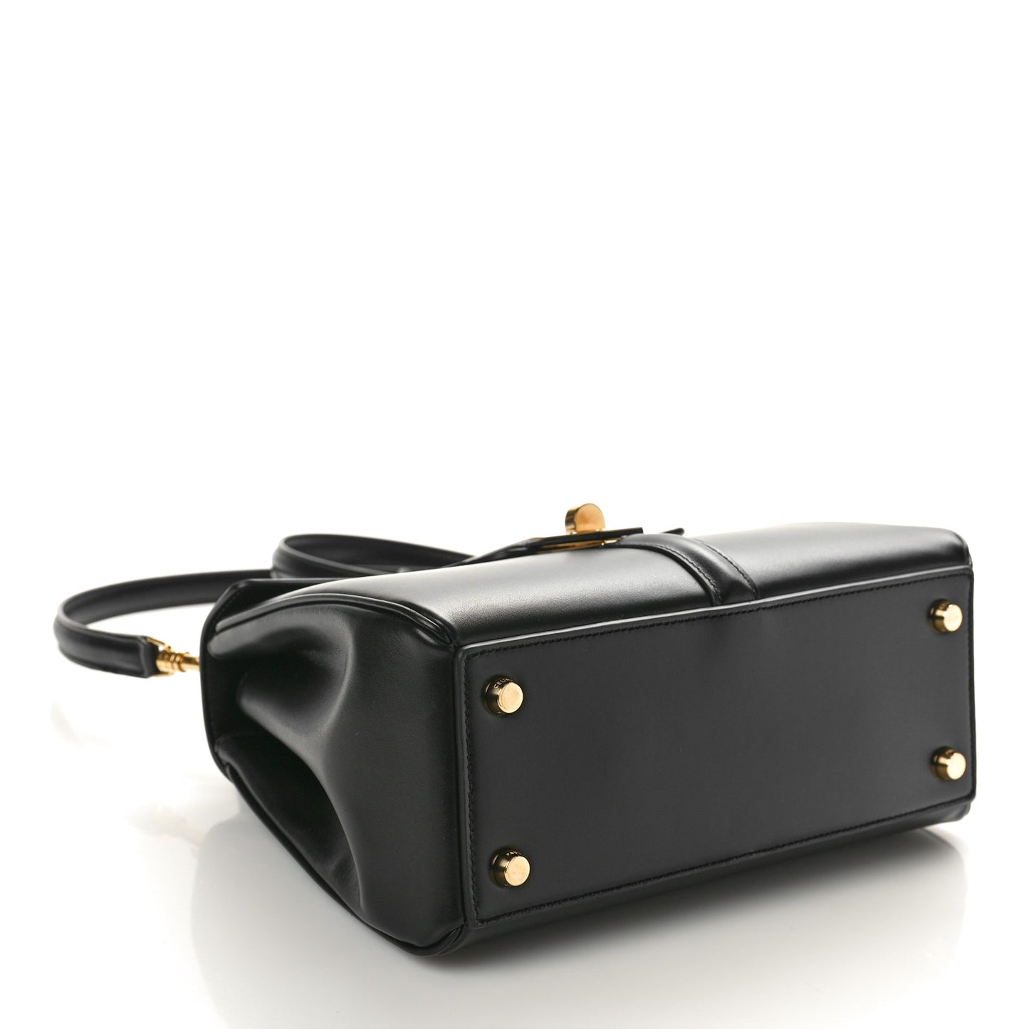 Satinated Calfskin Small 16 Top Handle Bag Black