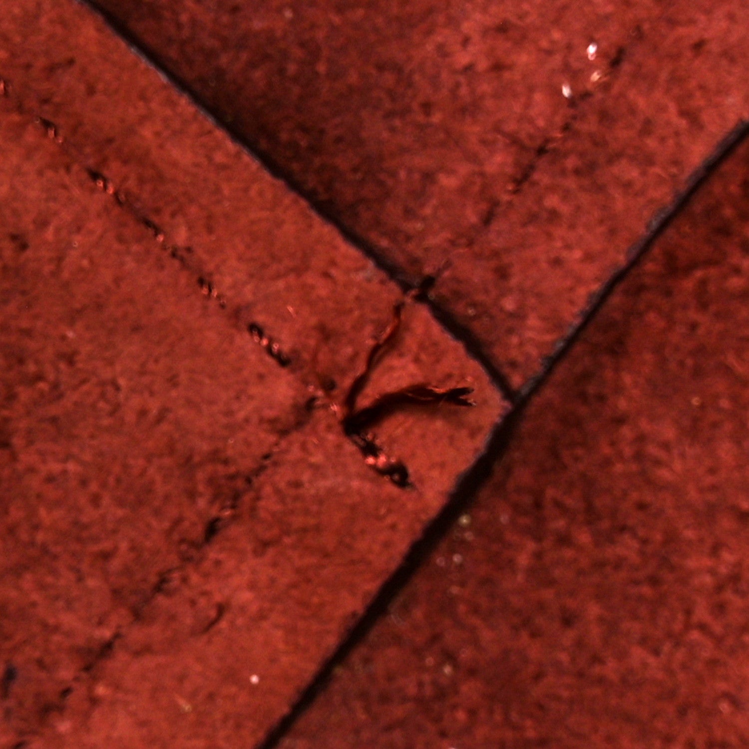 Interior: Residue marks, ink marks, scuffs, surface wear, pocket(s) stretched, frayed stitch(es)