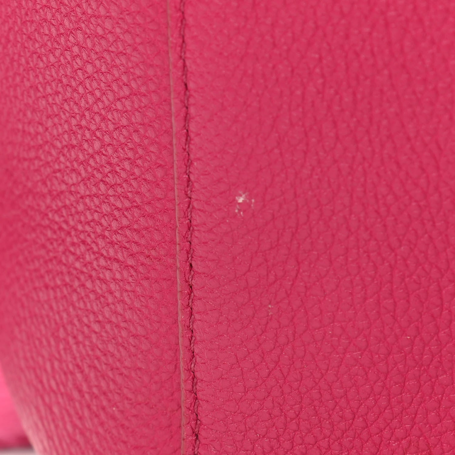 This is an authentic CELINE Soft Grained Calfskin Small Sangle Bucket Bag in Pink. This ultra-chic shoulder bag is crafted of soft grained calfskin leather in bright pink. This shoulder bag features a matching fabric shoulder strap with gold clasps. The top opens to a pink suede interior with zipper and patch pockets.Follow this item for alerts. Celine is a registered trademark of Celine. FASHIONPHILE is not affiliated with Celine.
