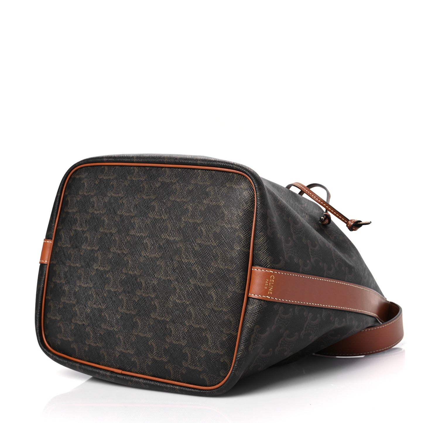 Celine/ Bags/ Shoulder Bags /Celine Triomphe Canvas Calfskin Medium Drawstring Bucket Bag Tan