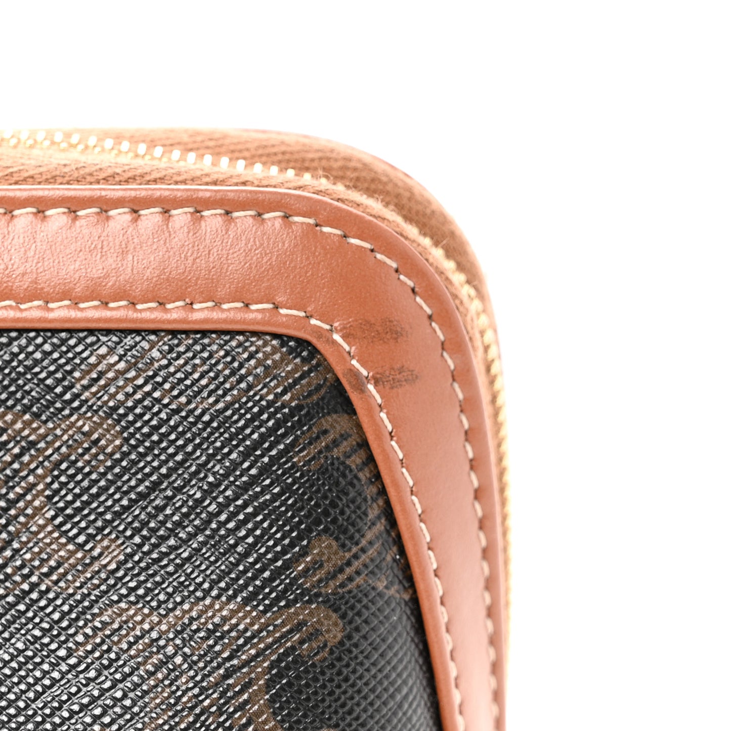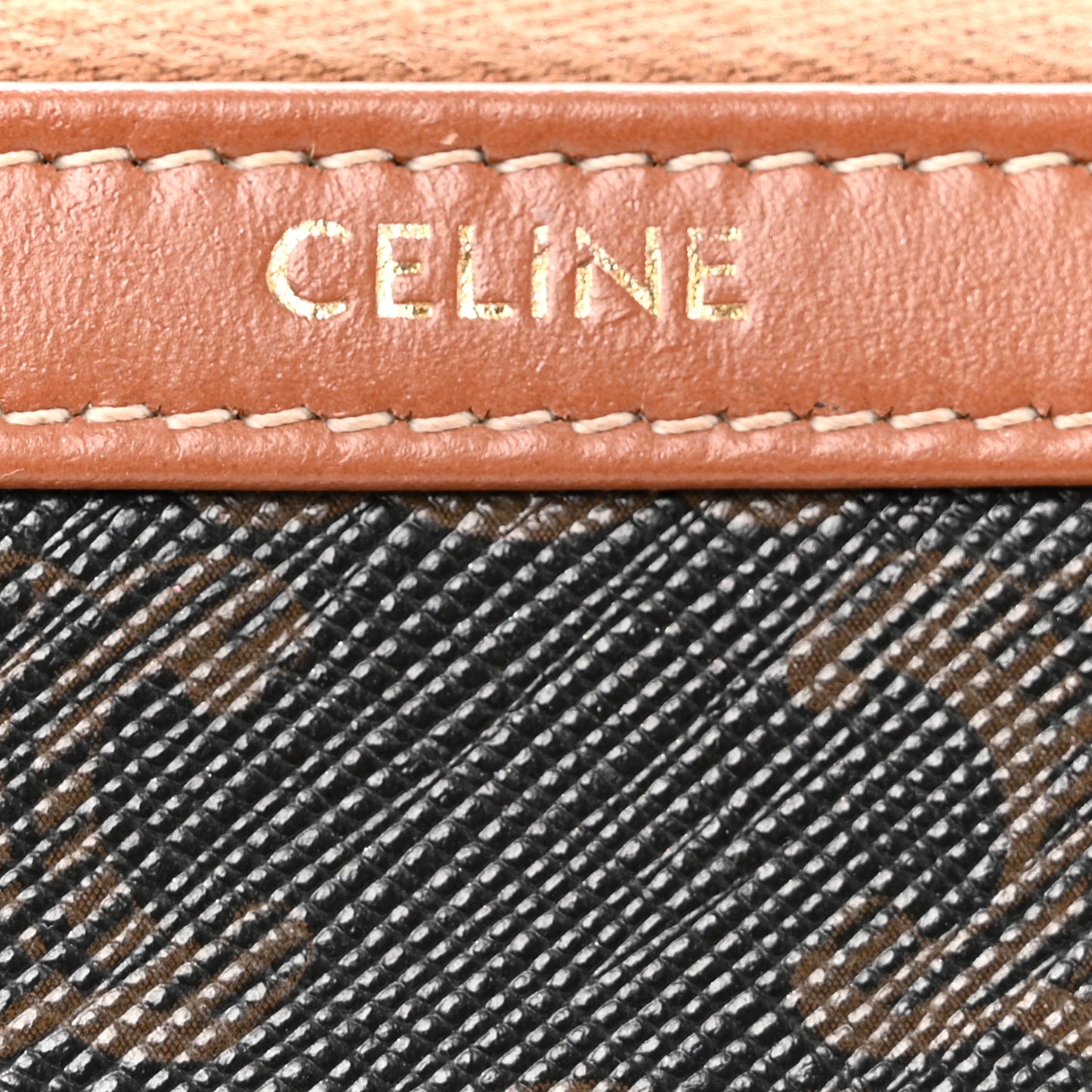 Celine/ Accessories/ Pouches /Celine Triomphe Canvas Calfskin Small Cosmetic Pouch Tan