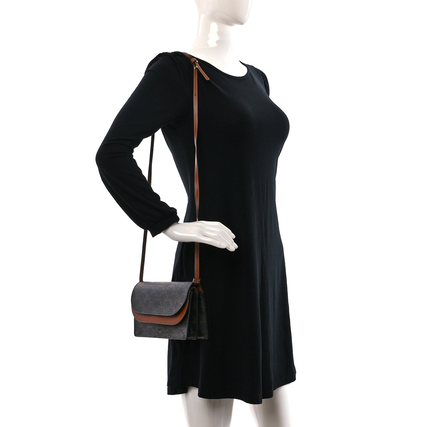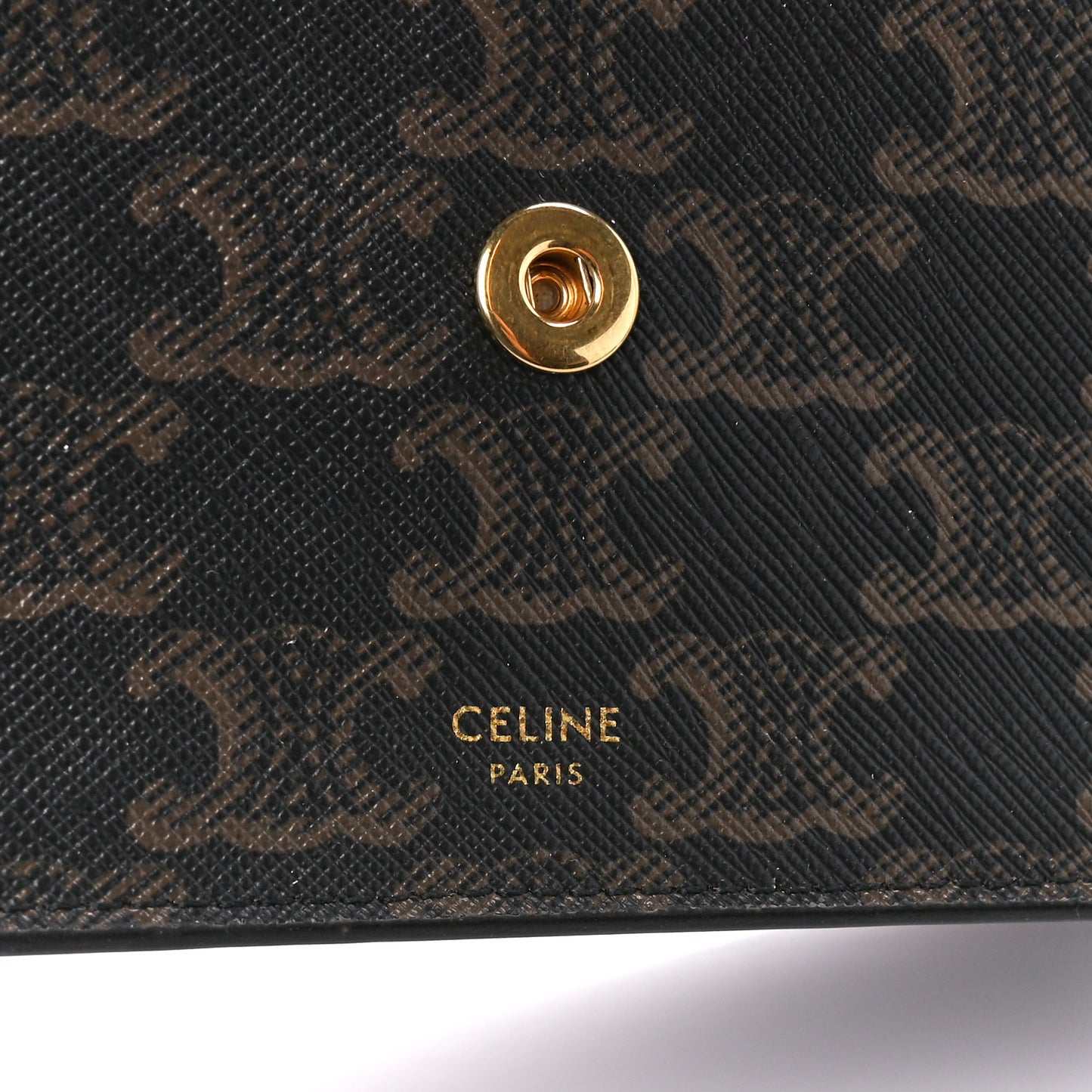 This is an authentic CELINE Triomphe Canvas Lambskin Wallet On Strap in Tan. This chic shoulder bag is crafted of fine-coated canvas with brown leather trim. It features an adjustable leather shoulder strap with gold hardware and a crossover flap. The handbag opens to a partitioned brown leather and fabric interior with pockets, card slots, and a zipper compartment.Follow this item for alerts. Celine is a registered trademark of Celine. FASHIONPHILE is not affiliated with Celine.