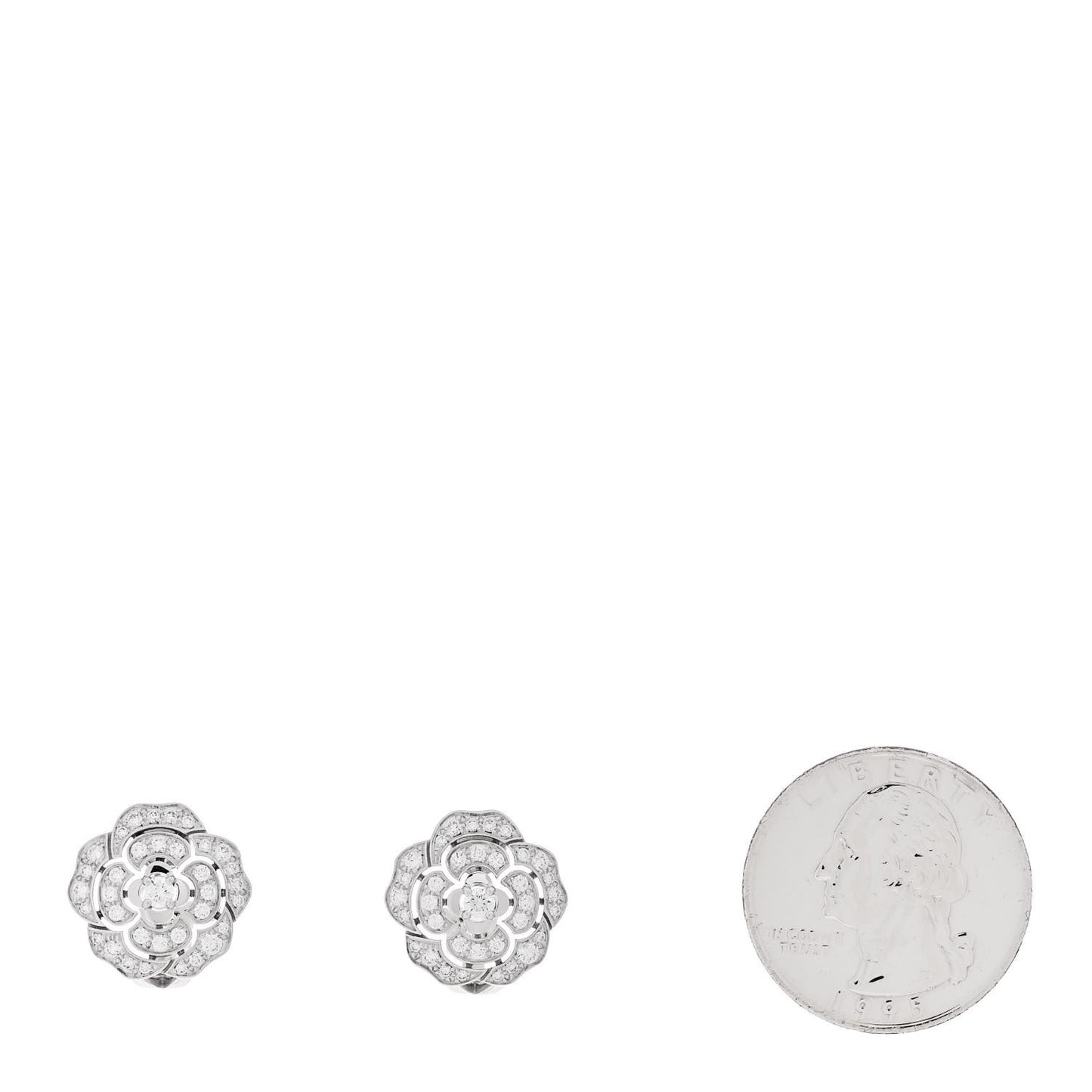 18K White Gold Diamond Bouton de Camelia Earrings