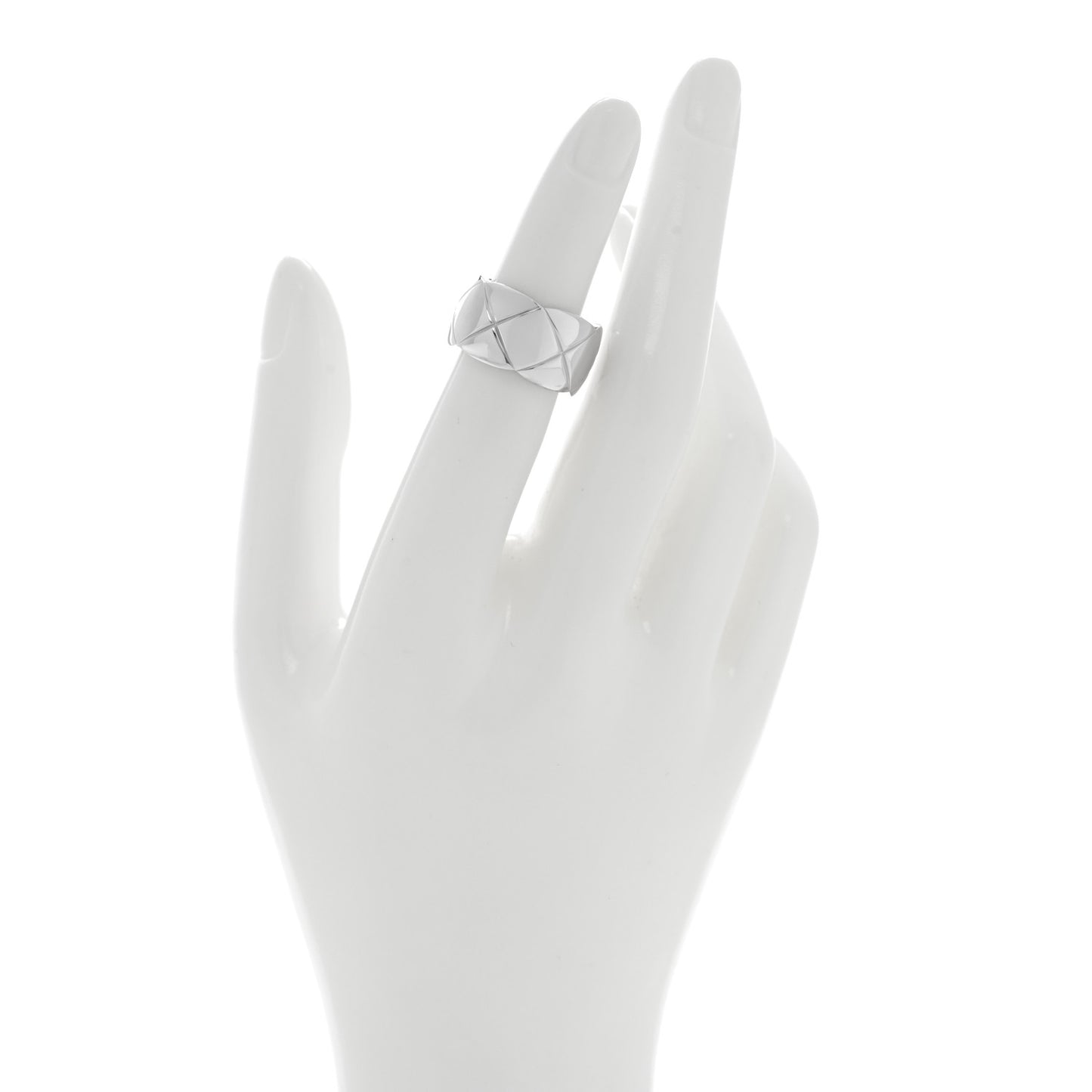 This is an authentic CHANEL 18K White Gold Large Coco Crush Ring 49 5. The ring is crafted of 18 karat white gold and features a quilt motif embossed throughout a wide band.Follow this item for alerts. Chanel is a registered trademark of Chanel. FASHIONPHILE is not affiliated with Chanel.