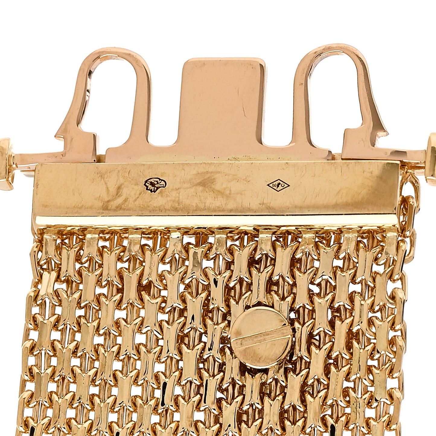 This is an authentic CHANEL 18K Yellow Gold Diamond Impression de Camelia Bracelet. The bracelet is crafted of 18 karat yellow gold and features a wide mesh band accented with camelia motifs set with diamonds, approximately .55 total carat weight.