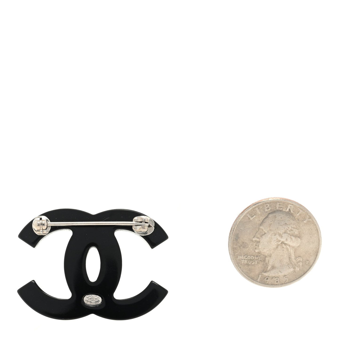 This is an authentic CHANEL Abalone CC Brooch in Iridescent Multicolor. This stunning brooch is an abalone Chanel CC logo set in black resin.