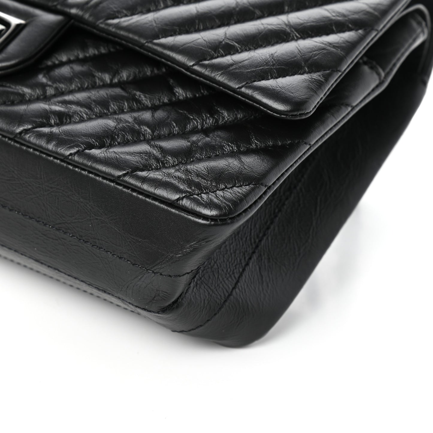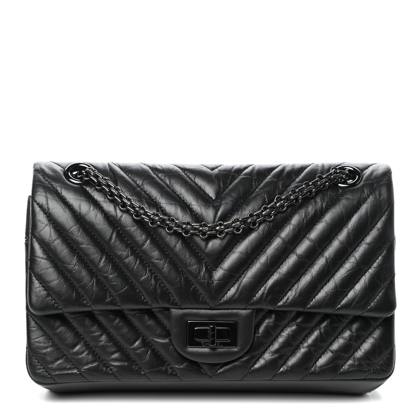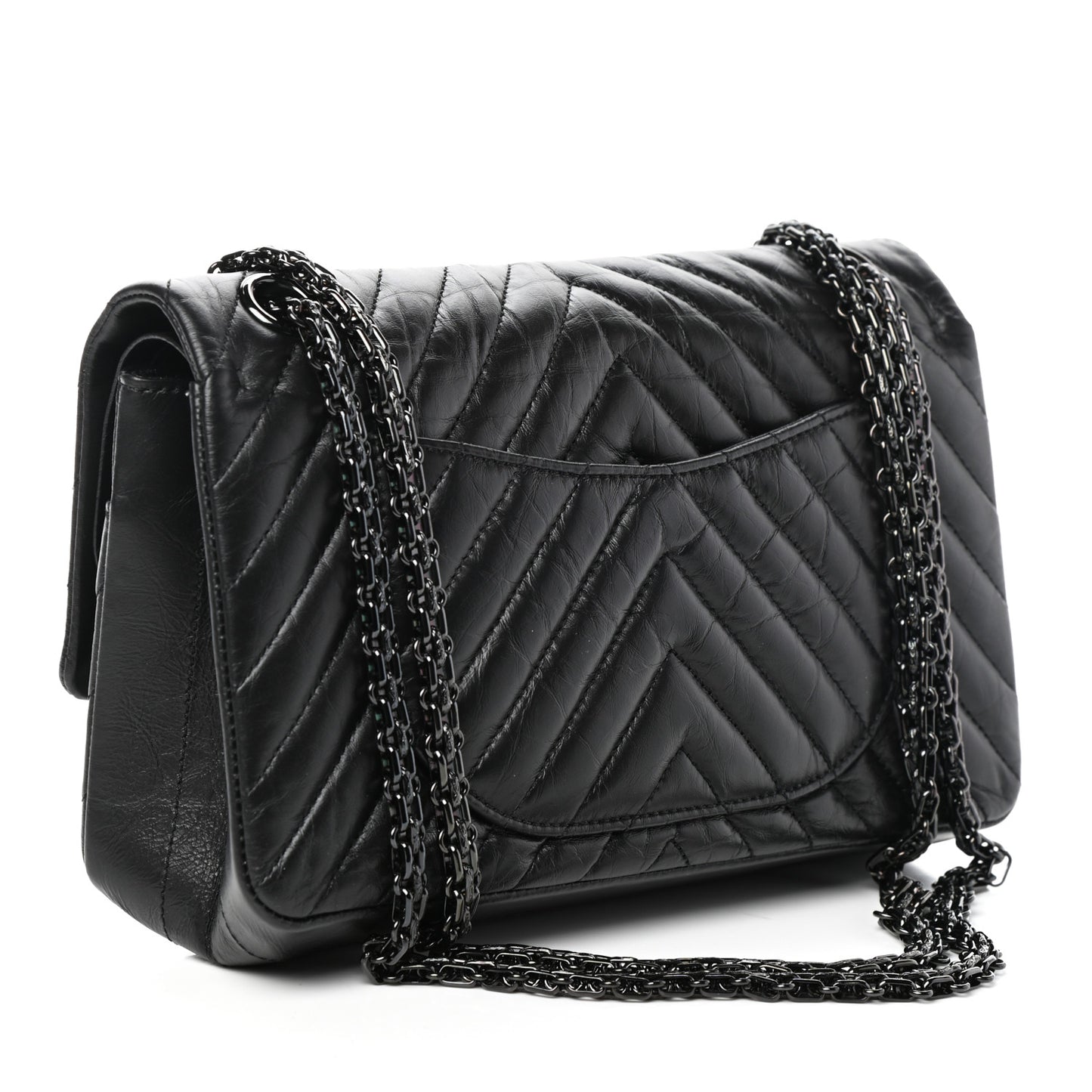 Aged Calfskin Chevron Quilted 2.55 Reissue 225 Flap So Black