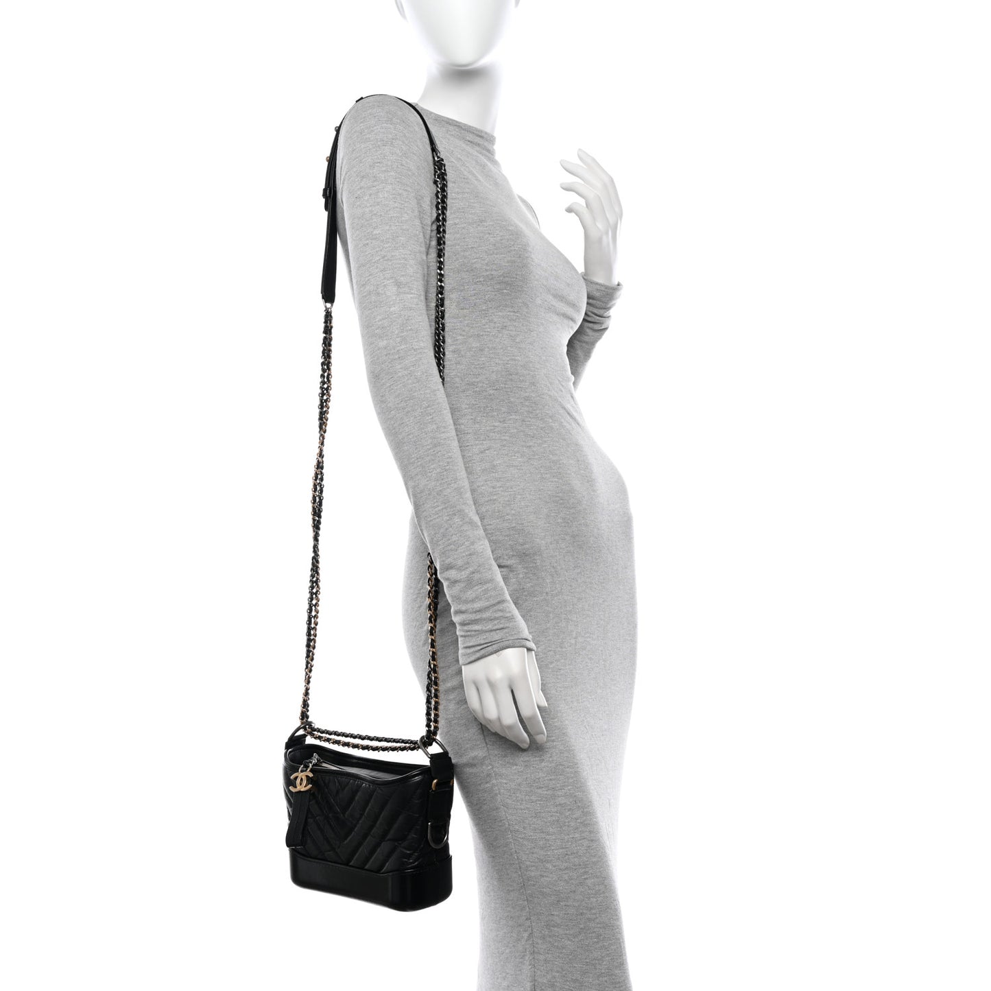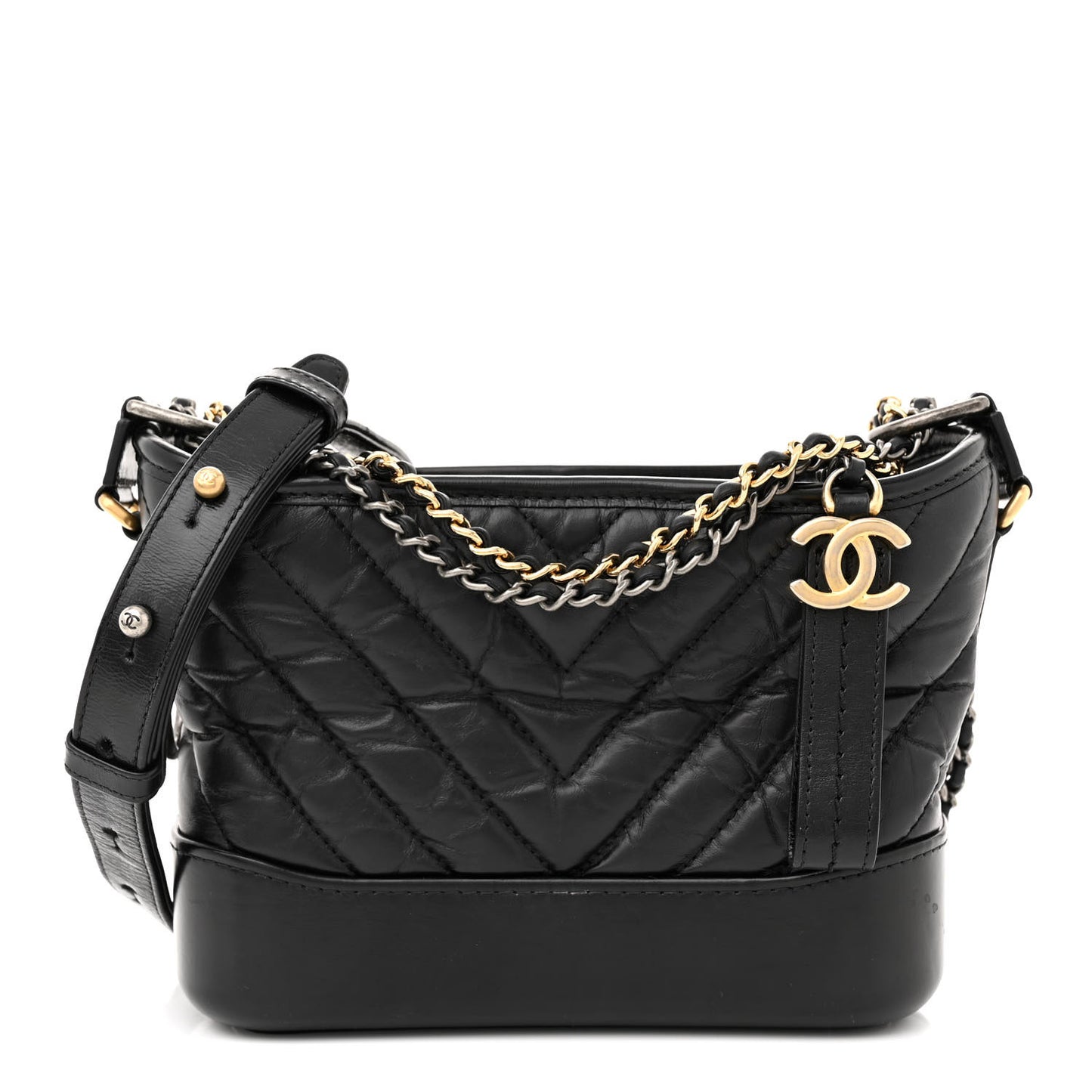 Chanel/ Bags/ Shoulder Bags /Chanel Aged Calfskin Chevron Quilted Small Gabrielle Hobo Black