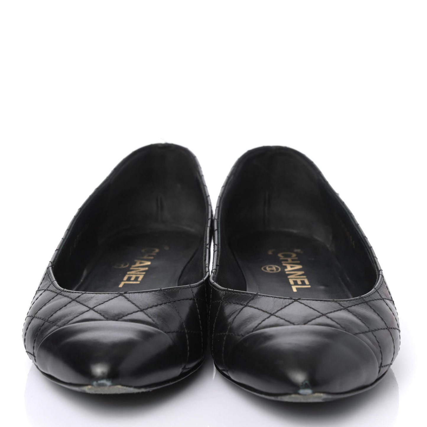 Chanel/ Accessories/ Shoes /Chanel Aged Calfskin Quilted CC Cap Toe Ballerina Flats 35.5 Black