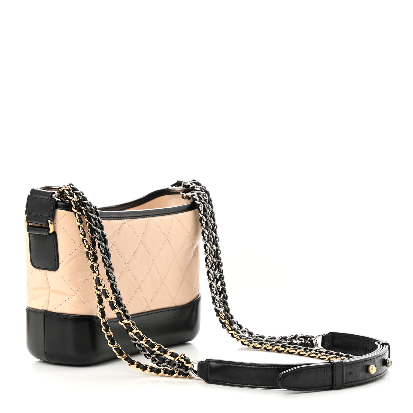 Chanel/ Bags/ Shoulder Bags /Chanel Aged Calfskin Quilted Small Gabrielle Hobo Beige Black