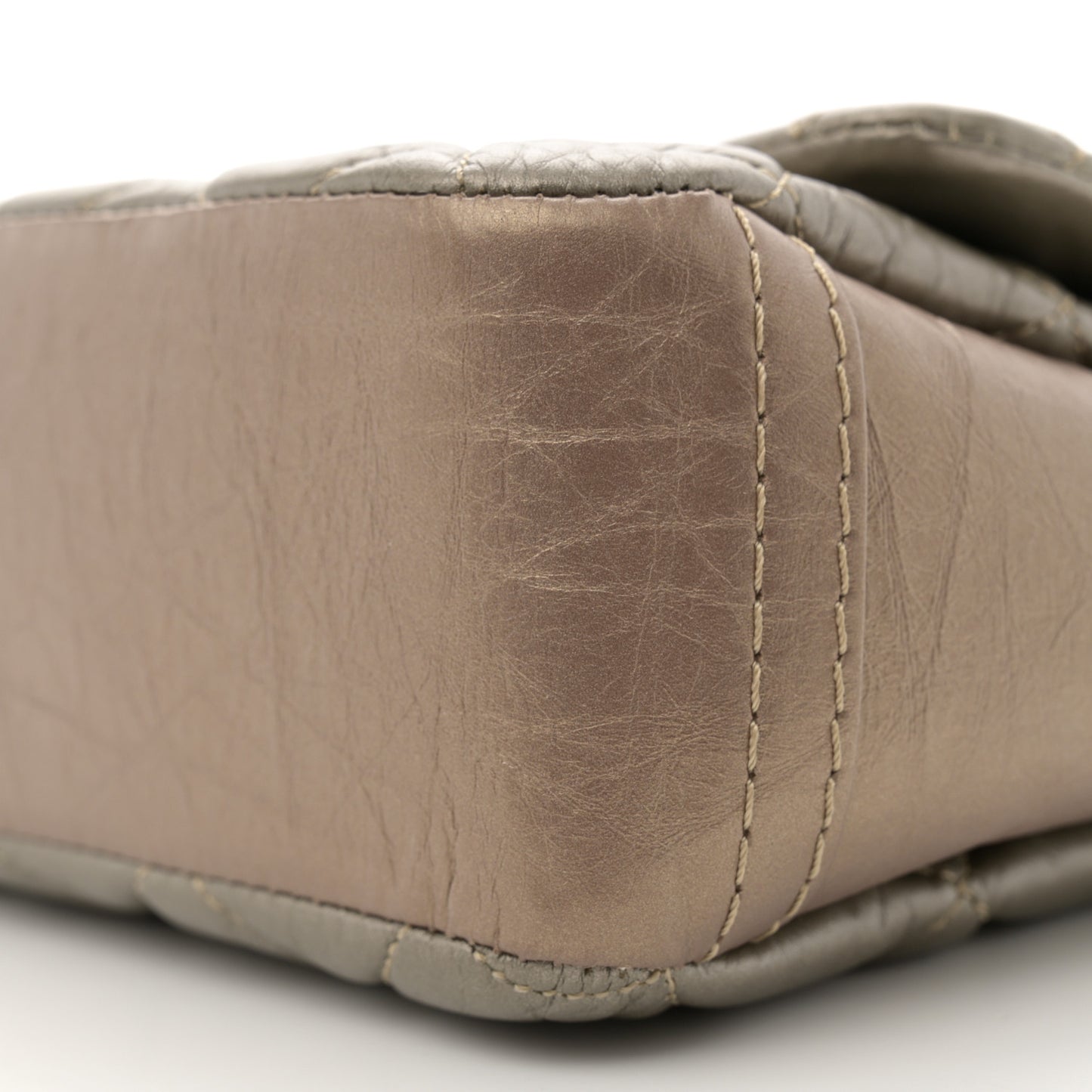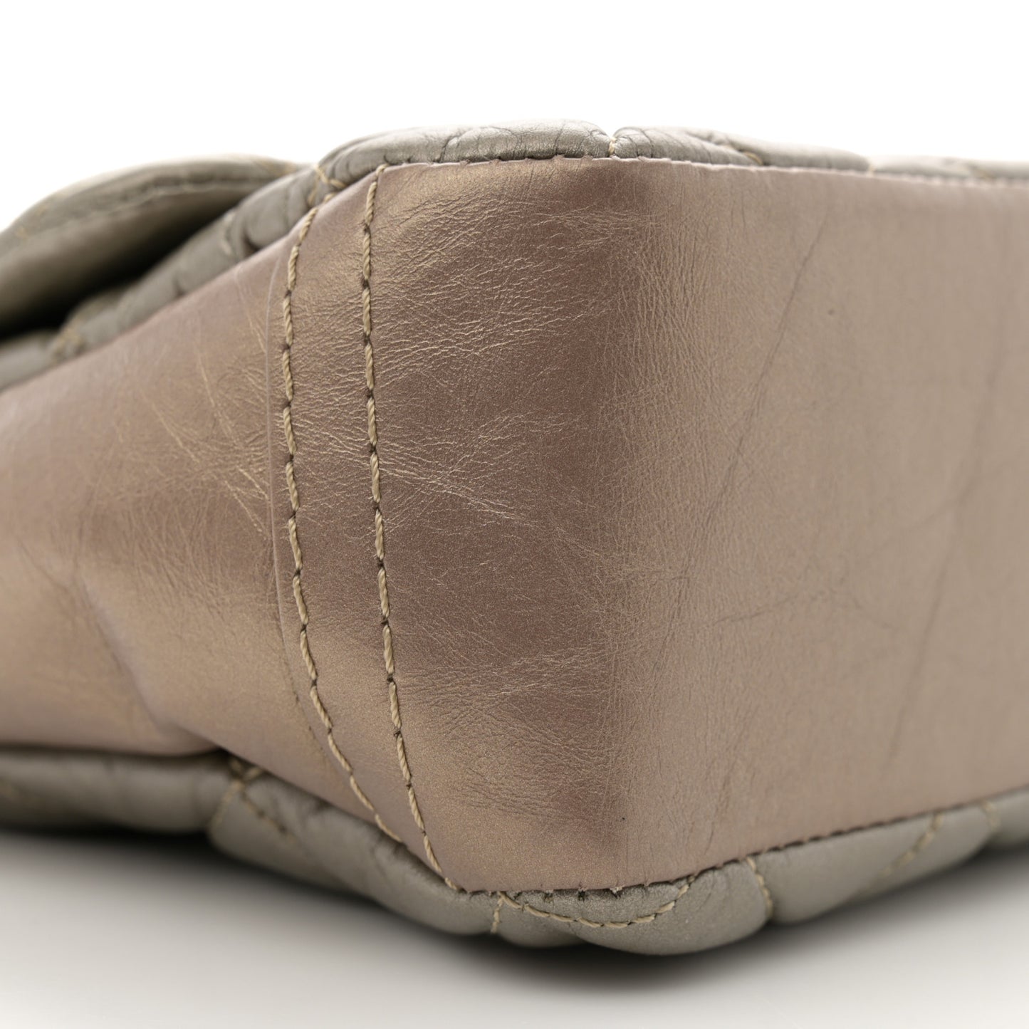 Aged Calfskin Quilted Small Lady Pearly Flap Silver Gold
