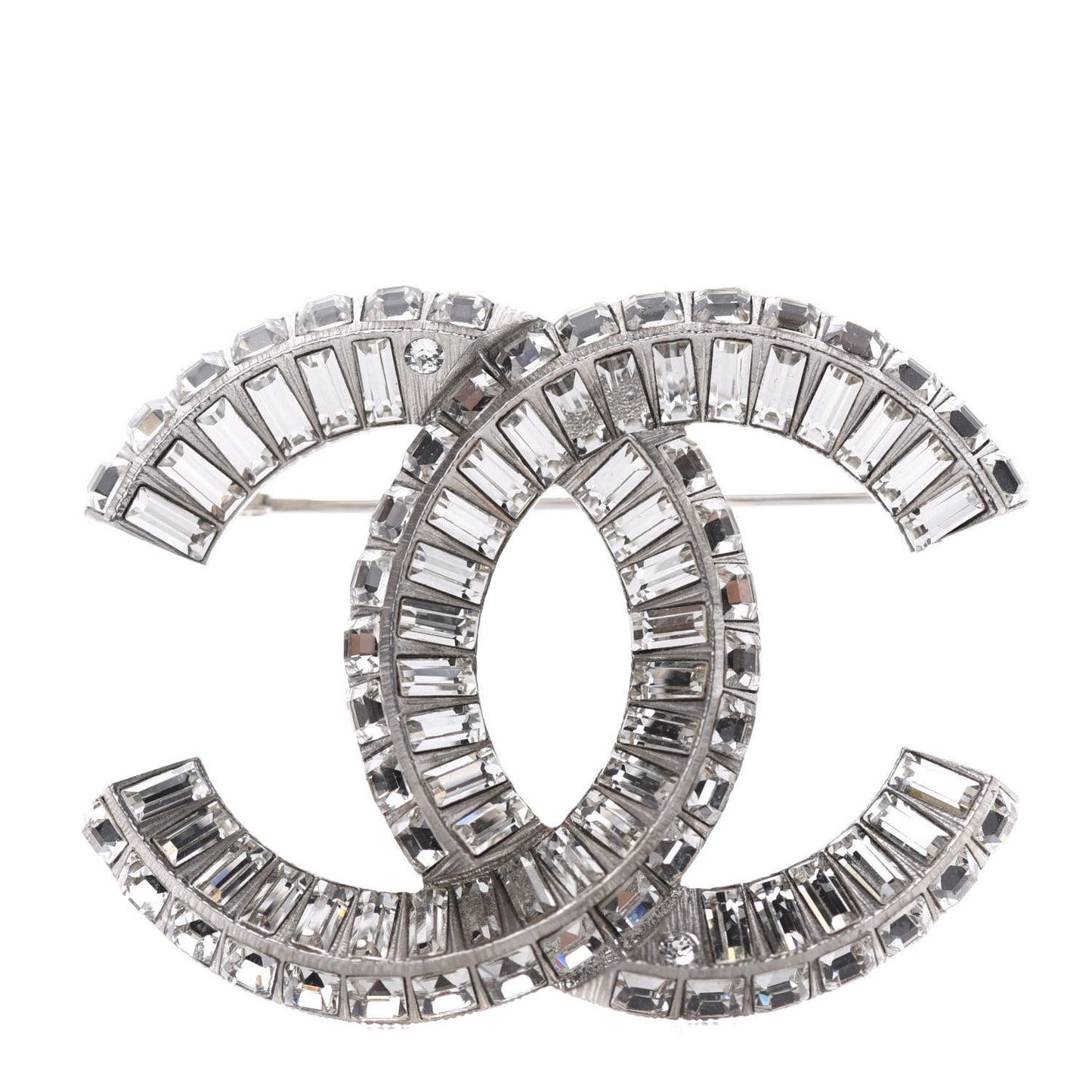 Chanel/ Accessories/ Pins & Brooches /Chanel Baguette Crystal CC Brooch Silver