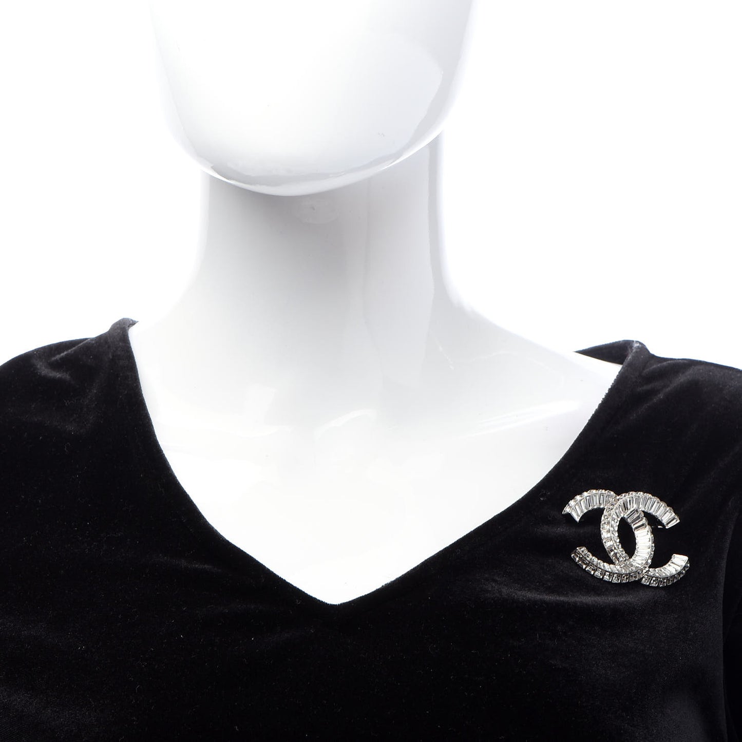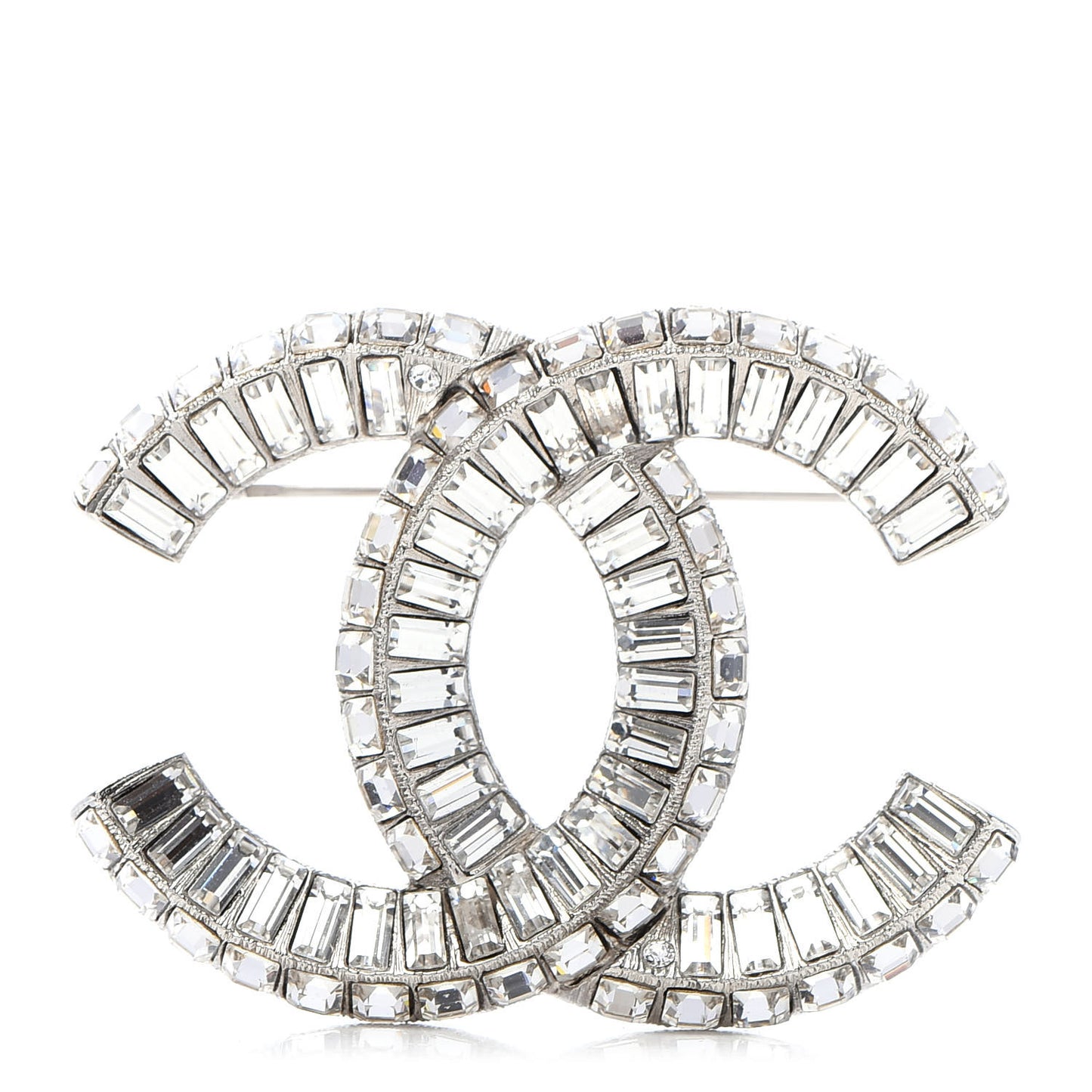 Chanel/ Accessories/ Pins & Brooches /Chanel Baguette Crystal CC Brooch Silver