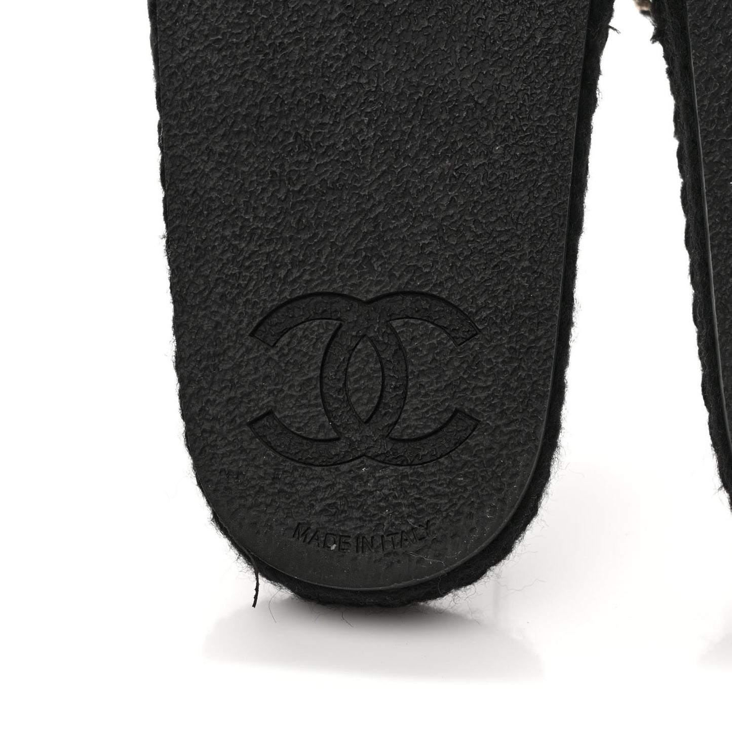 This is an authentic pair of CHANEL Braided Knit CC Mules size 37 in Black and Gold. These sandals feature a jute midsole and a Chanel CC metal logo.Follow this item for alerts. Chanel is a registered trademark of Chanel. FASHIONPHILE is not affiliated with Chanel.
