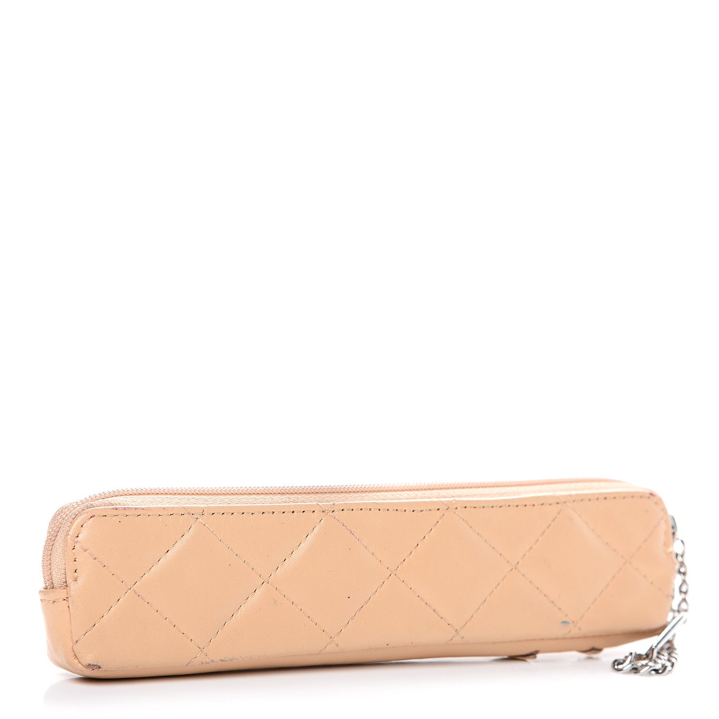 This is an authentic CHANEL Calfskin Cambon Pencil Case in Beige. This is a stylish small Chanel pochette crafted of calfskin leather with a top zipper. This opens to a fabric interior for accessories and multi-purpose use with the timeless quality and style of Chanel!Follow this item for alerts. Chanel is a registered trademark of Chanel. FASHIONPHILE is not affiliated with Chanel.
