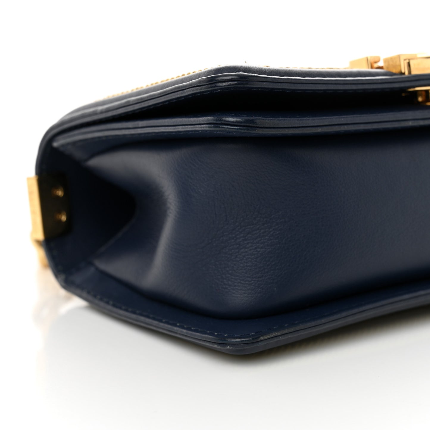 Calfskin Chevron Quilted Braided Small Boy Flap White Navy