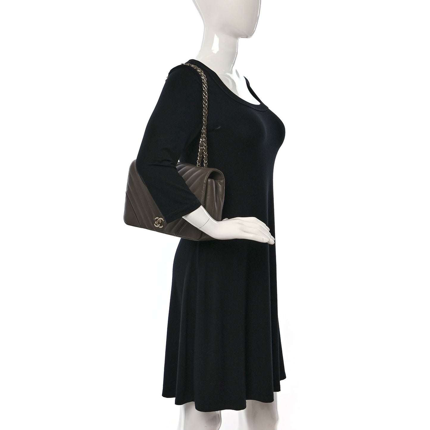 Chanel/ Bags/ Shoulder Bags /Chanel Calfskin Chevron Quilted Large Statement Flap Khaki