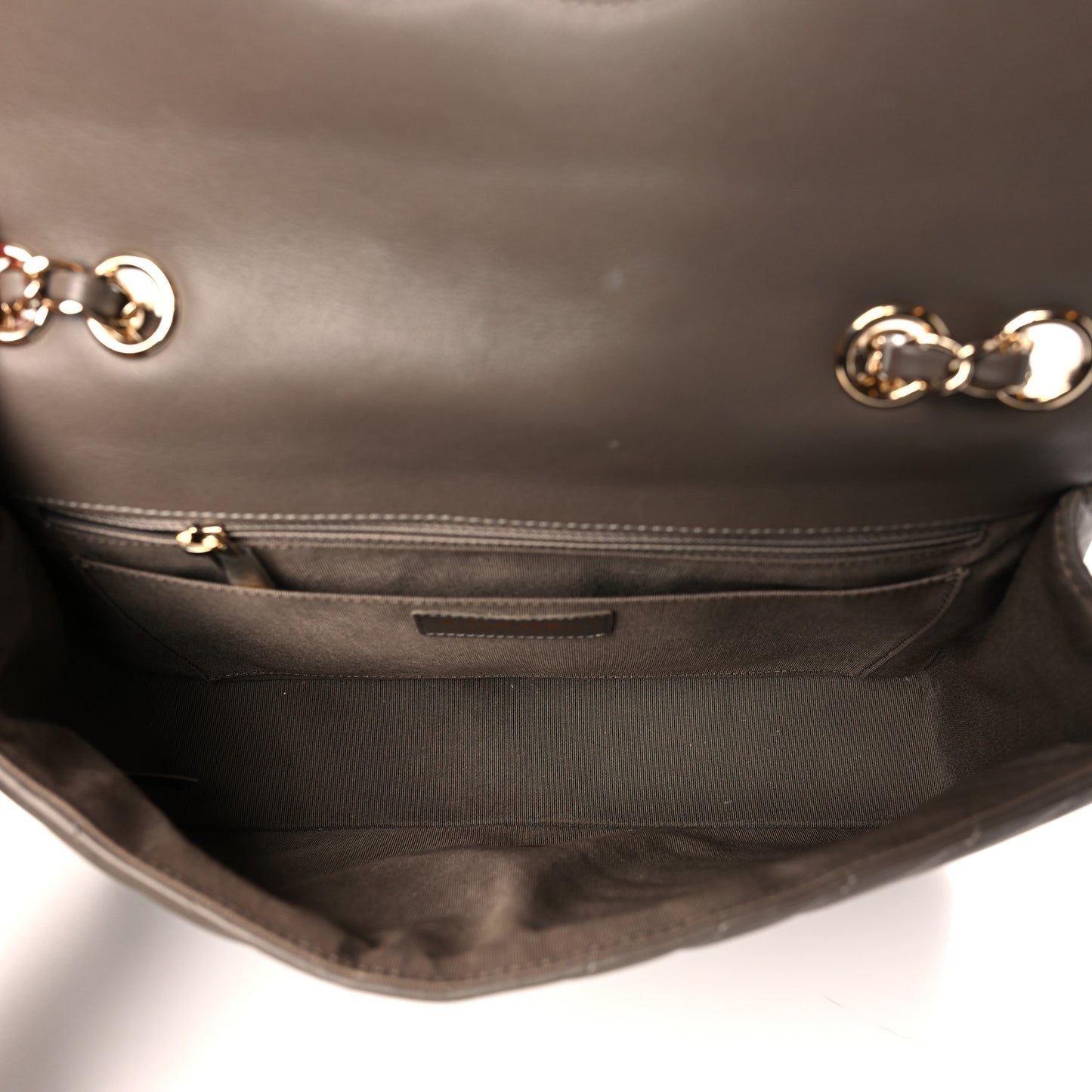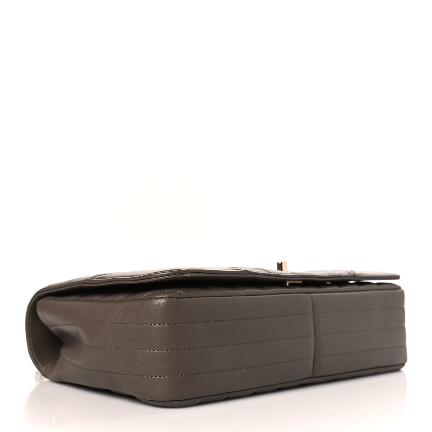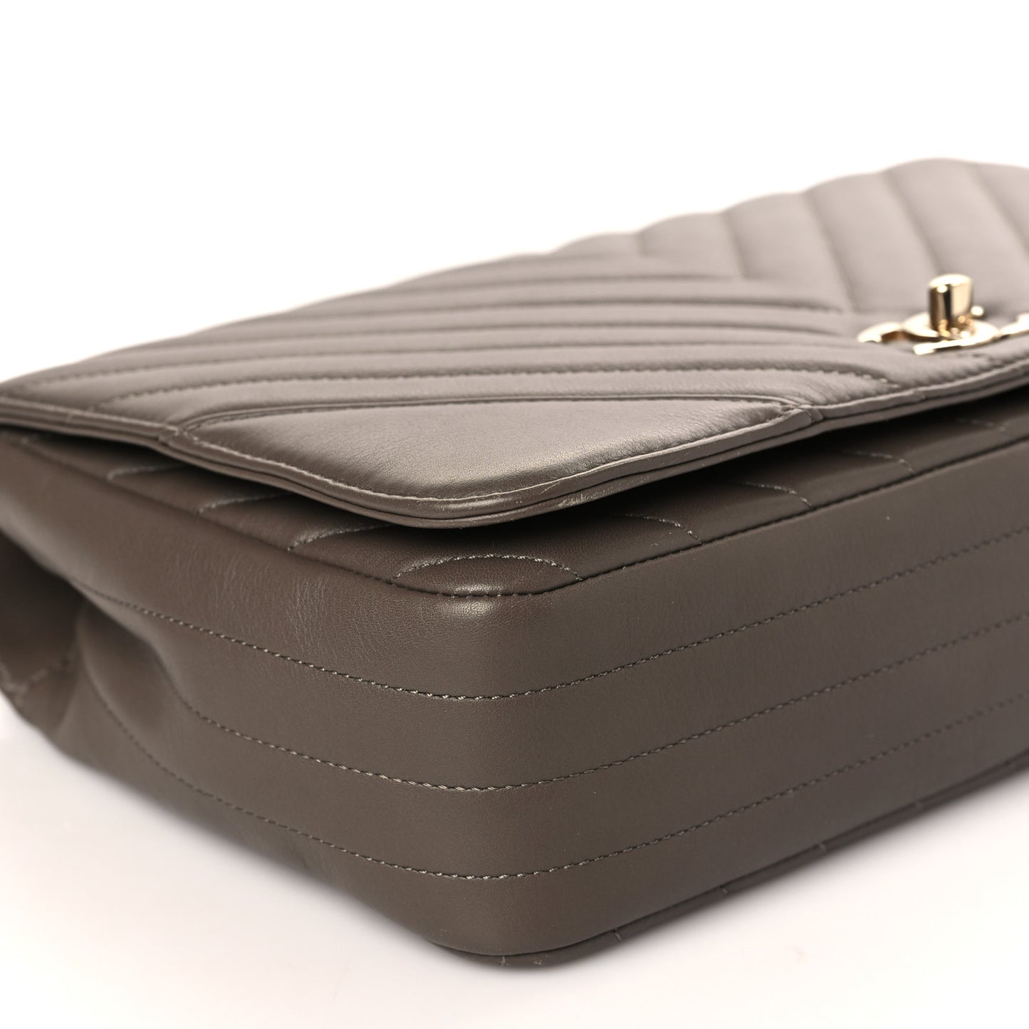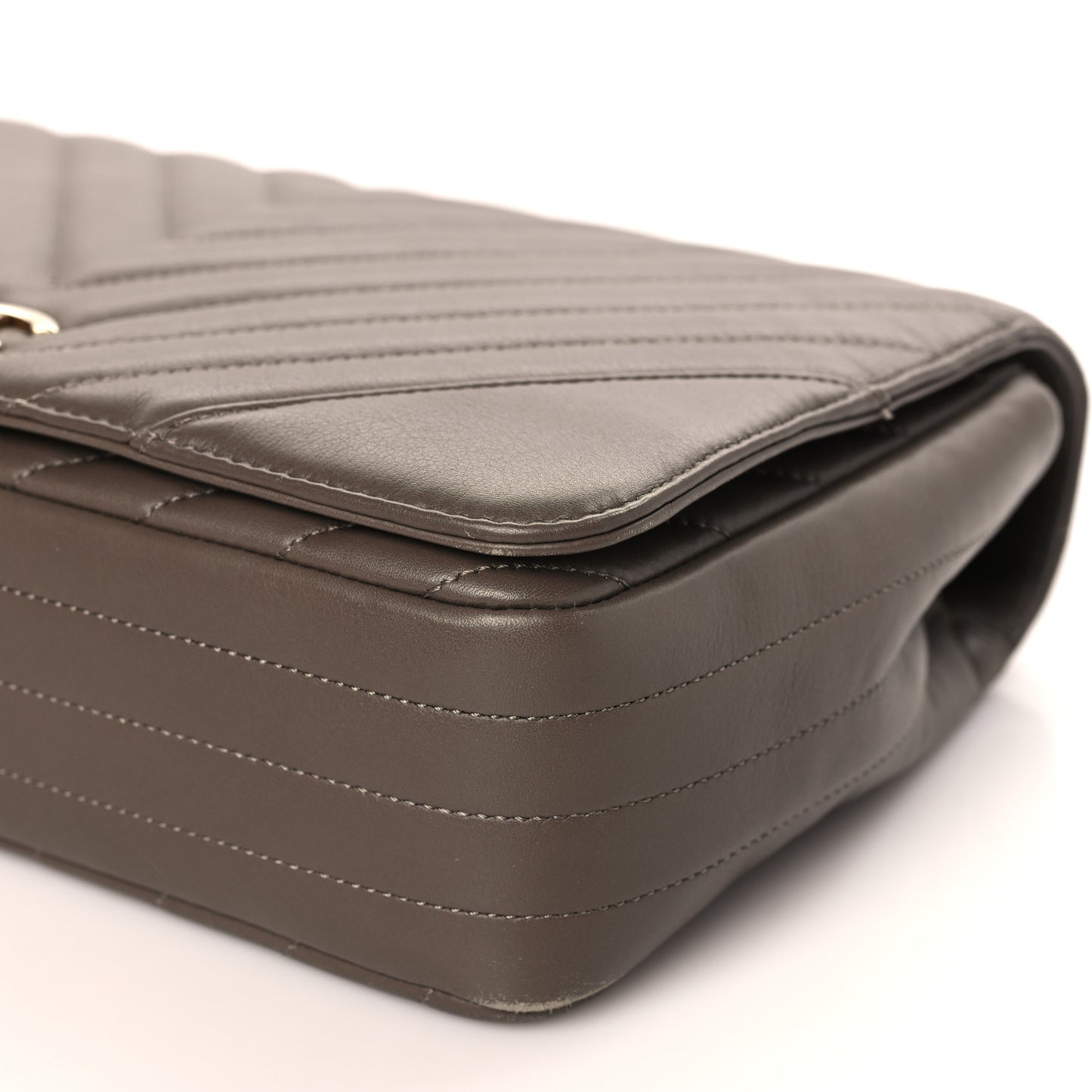 Calfskin Chevron Quilted Large Statement Flap Khaki