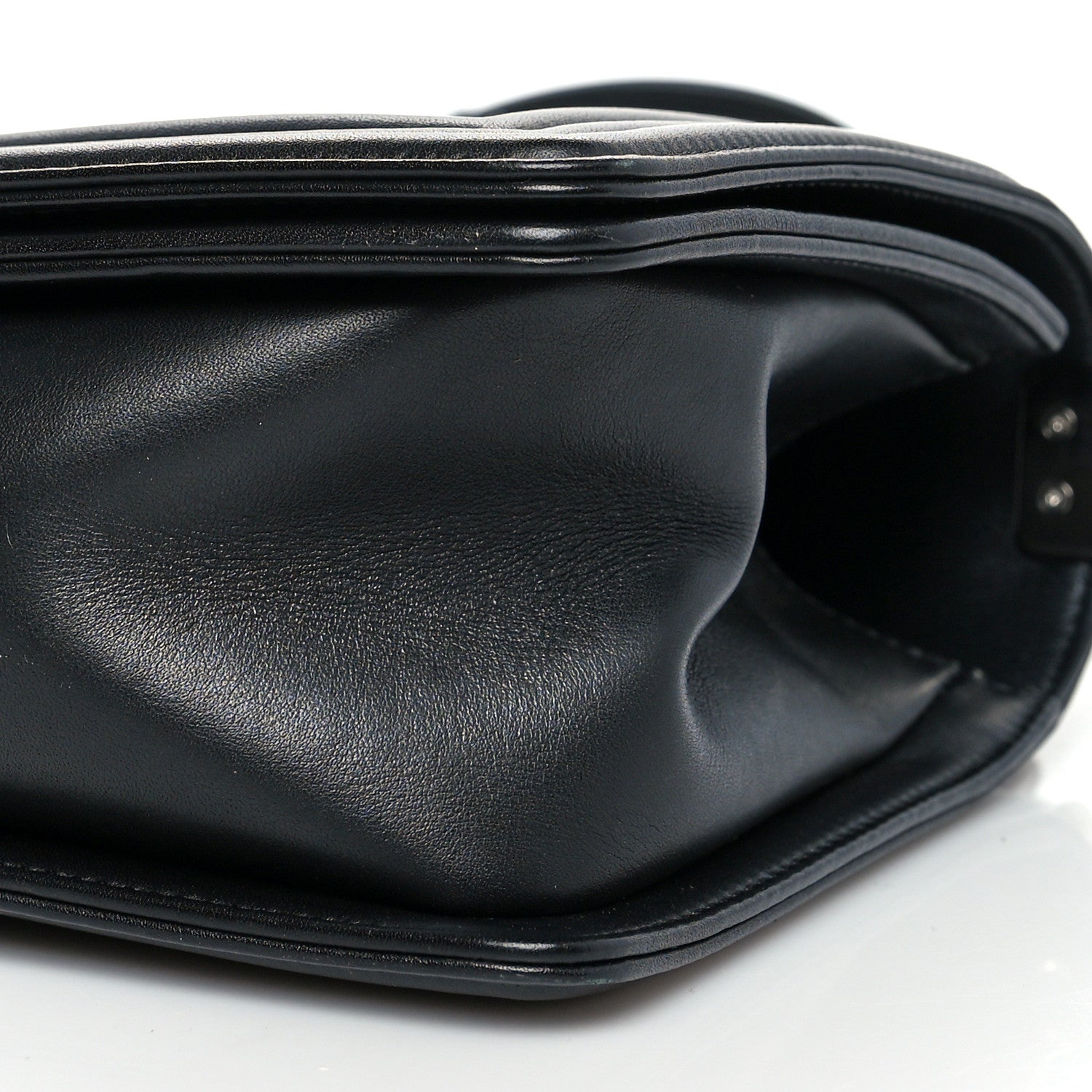 Calfskin Chevron Quilted Medium Boy Flap Black