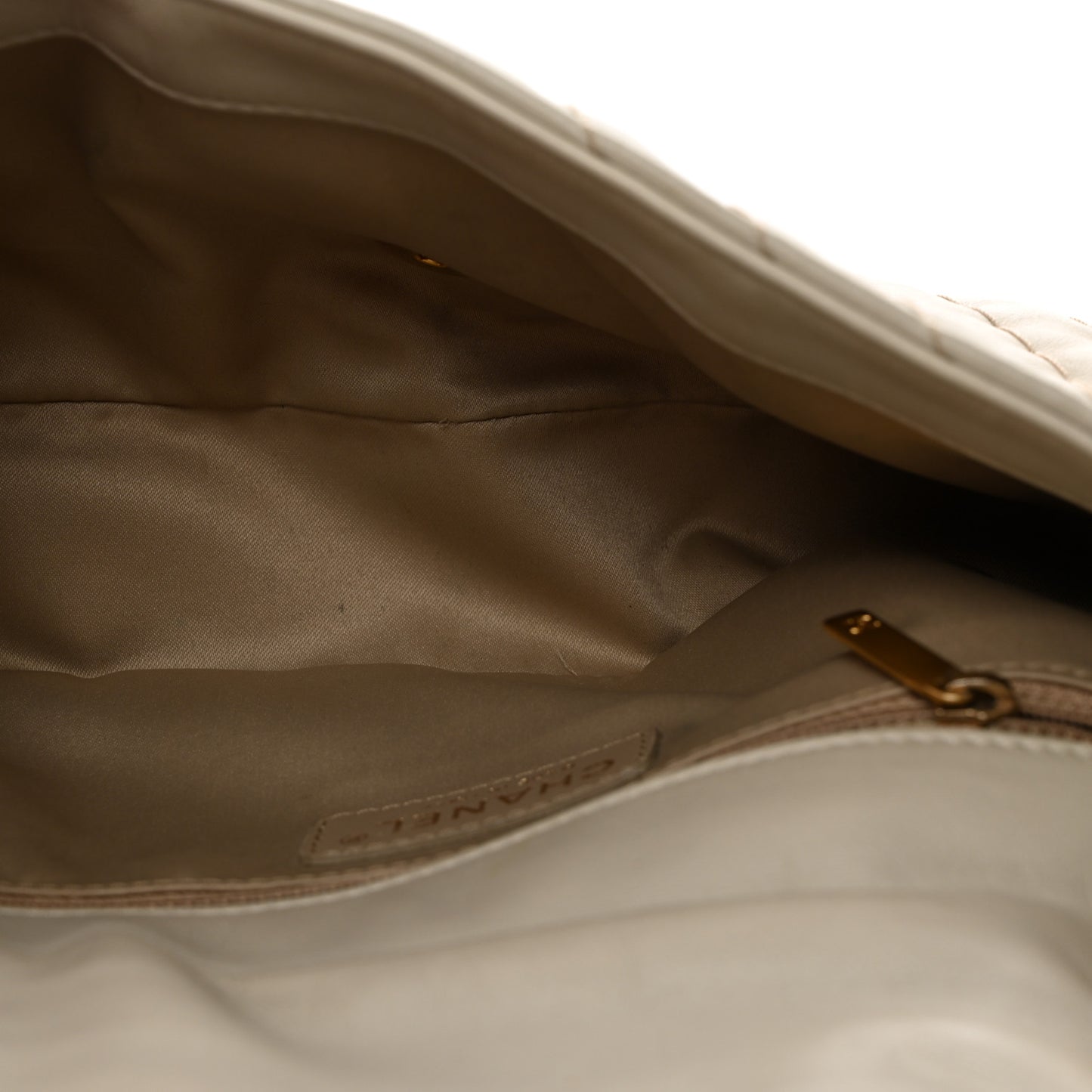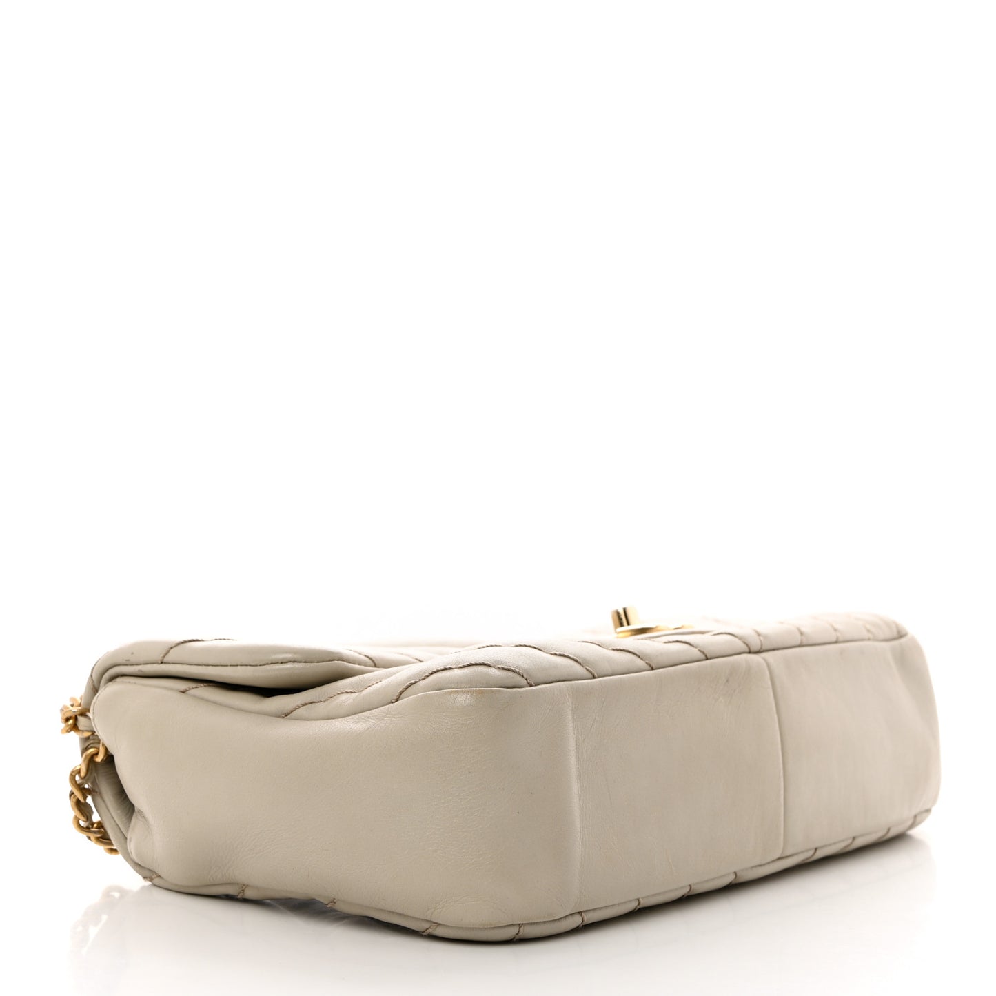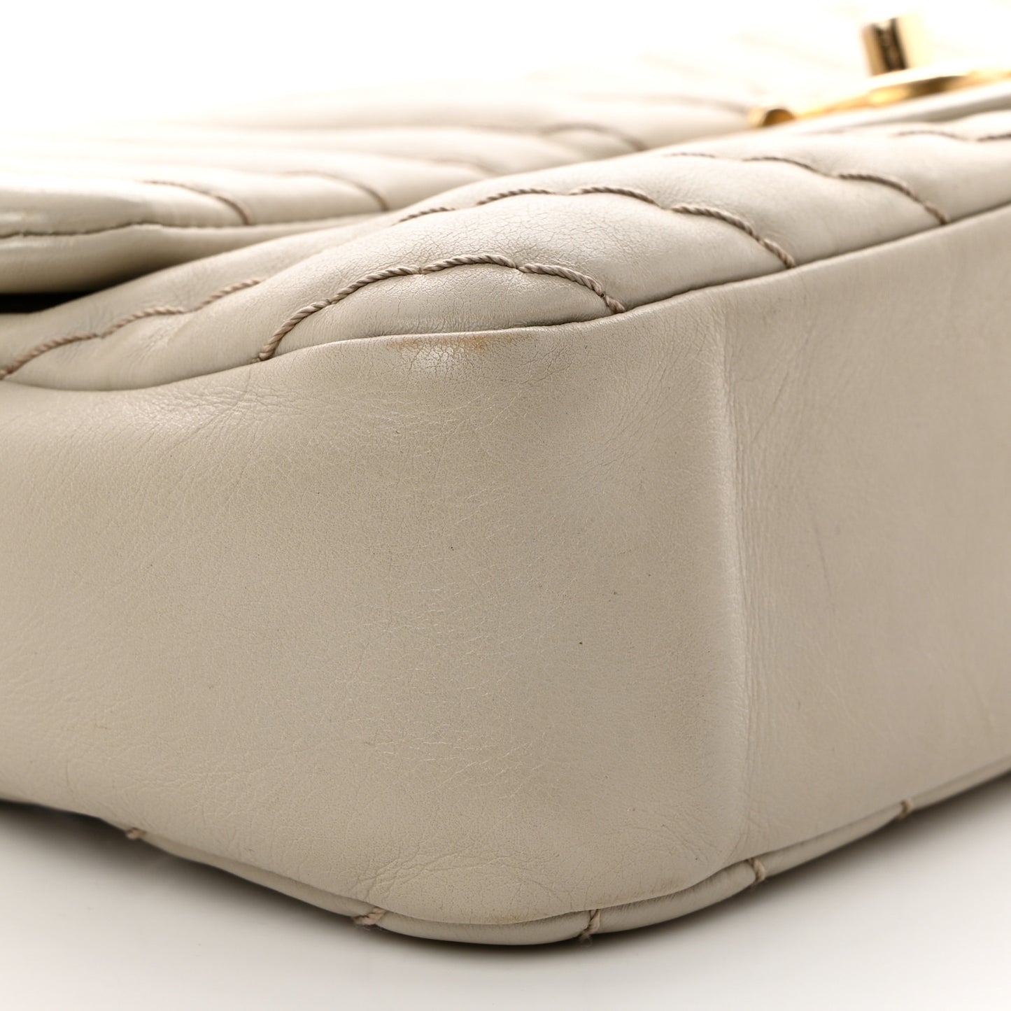 Calfskin Chevron Quilted Medium Surpique Flap Light Grey