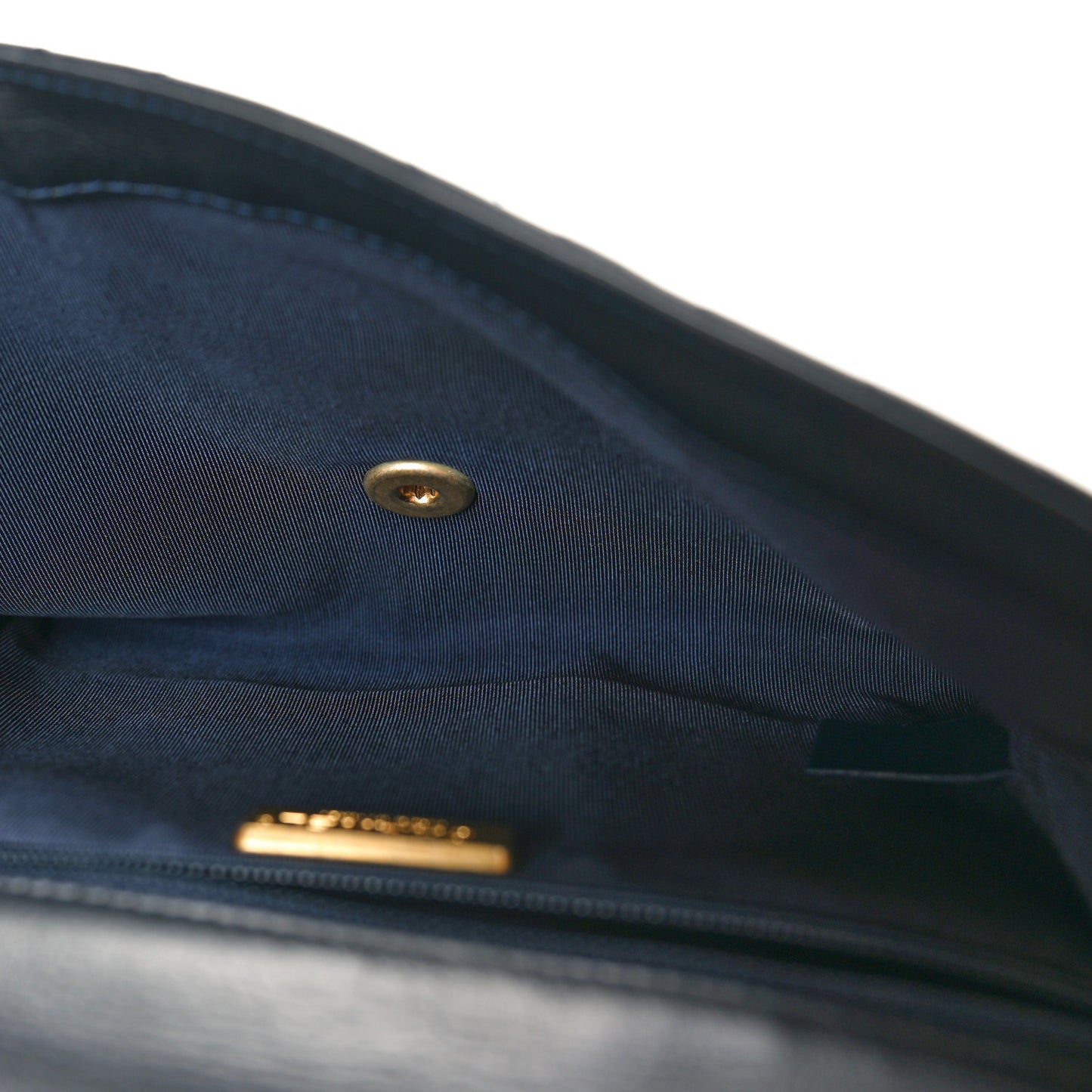 Calfskin Chevron Quilted Rock The Corner Clutch With Chain Black