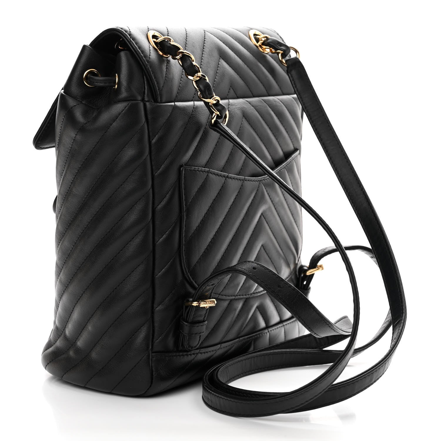 This is an authentic CHANEL Calfskin Chevron Quilted Small Urban Spirit Backpack in Black. This stylish backpack is crafted of soft chevron-quilted calfskin leather in black. The backpack features adjustable leather shoulder straps, and a polished gold classic CC turn-lock on the crossover flap. This opens the bag to a black fabric interior with zipper and patch pockets.Follow this item for alerts. Chanel is a registered trademark of Chanel. FASHIONPHILE is not affiliated with Chanel.