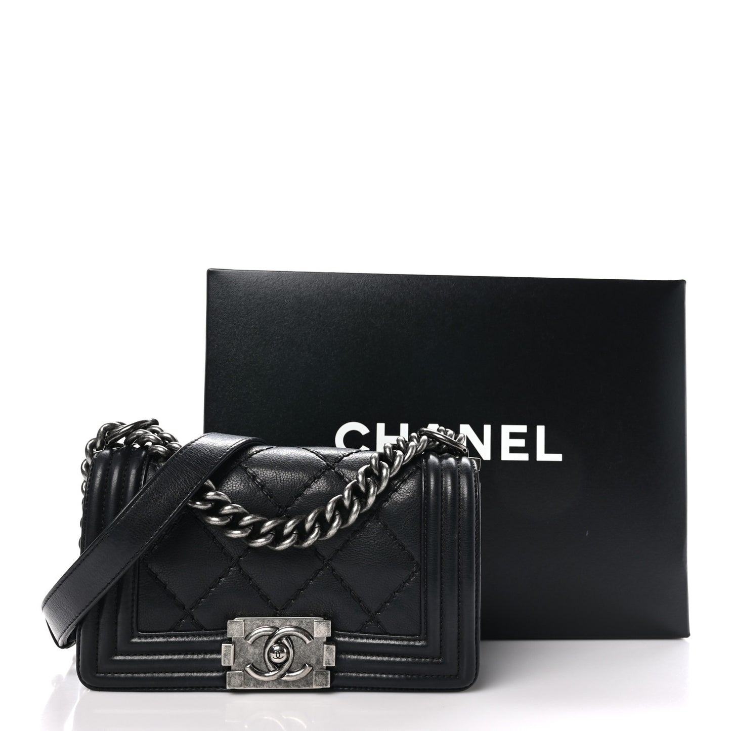 Chanel/ Bags/ Shoulder Bags /Chanel Calfskin Double Stitch Small Boy Flap Black