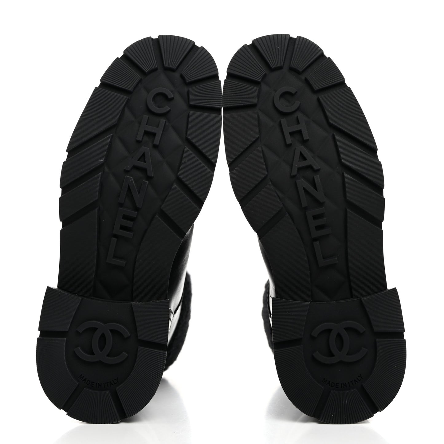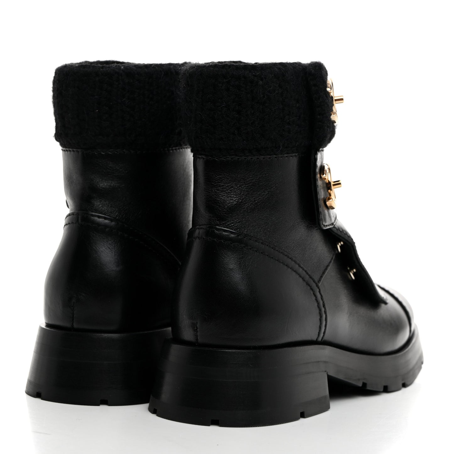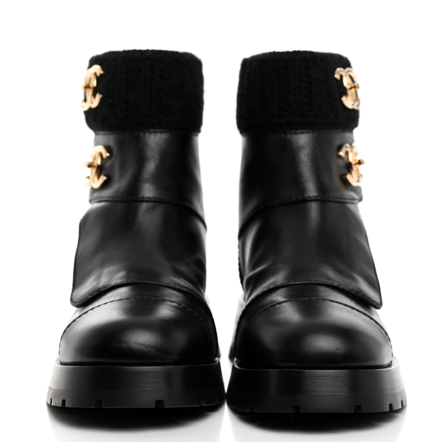 Chanel/ Accessories/ Shoes /Chanel Calfskin Knit CC Short Boots 36 Black