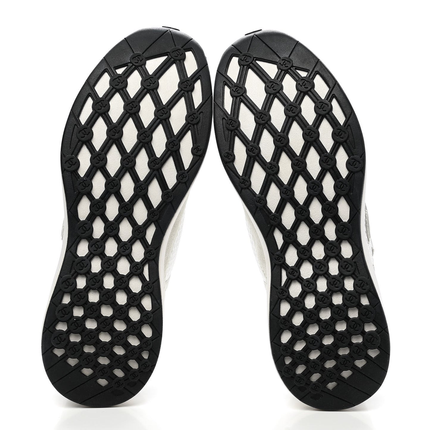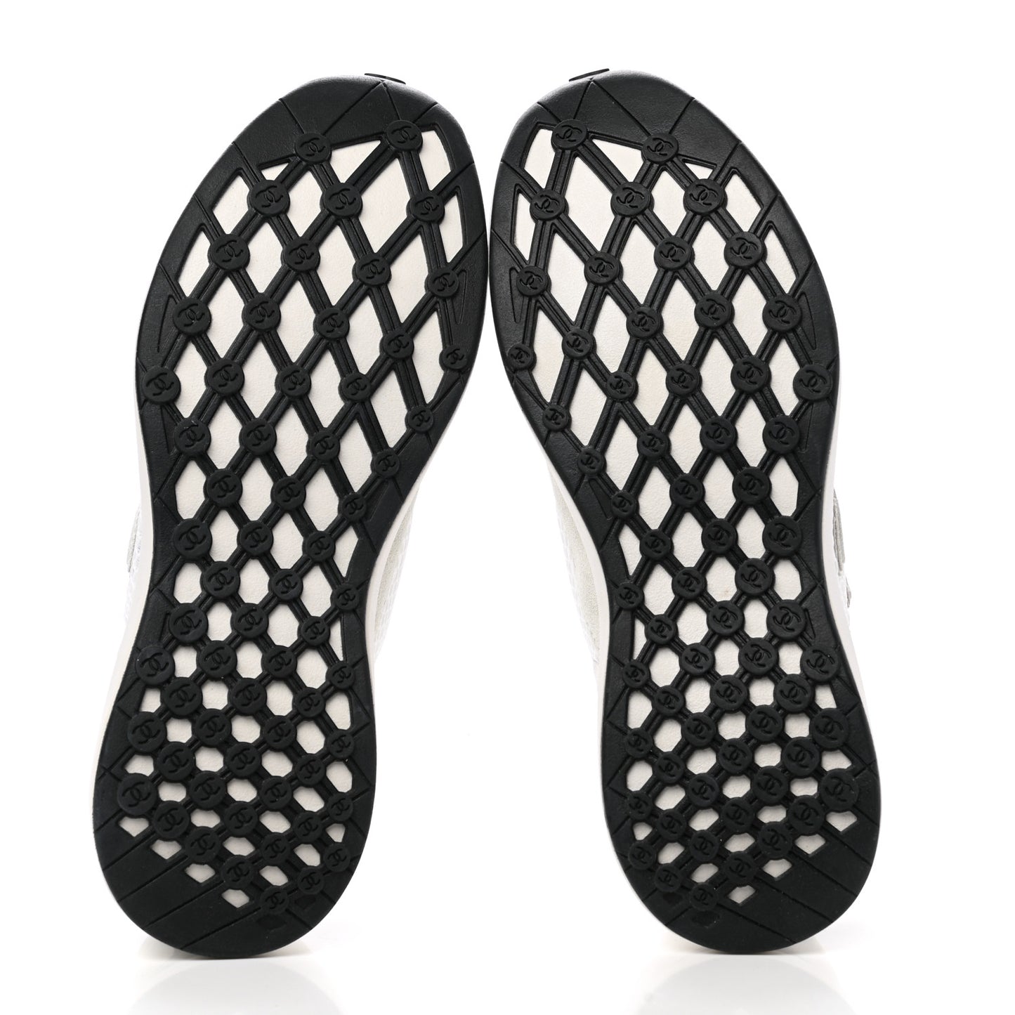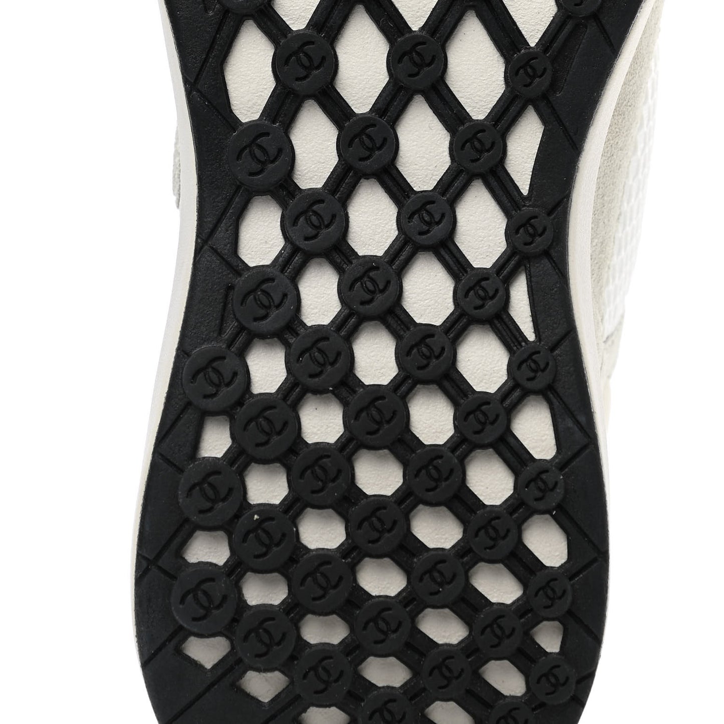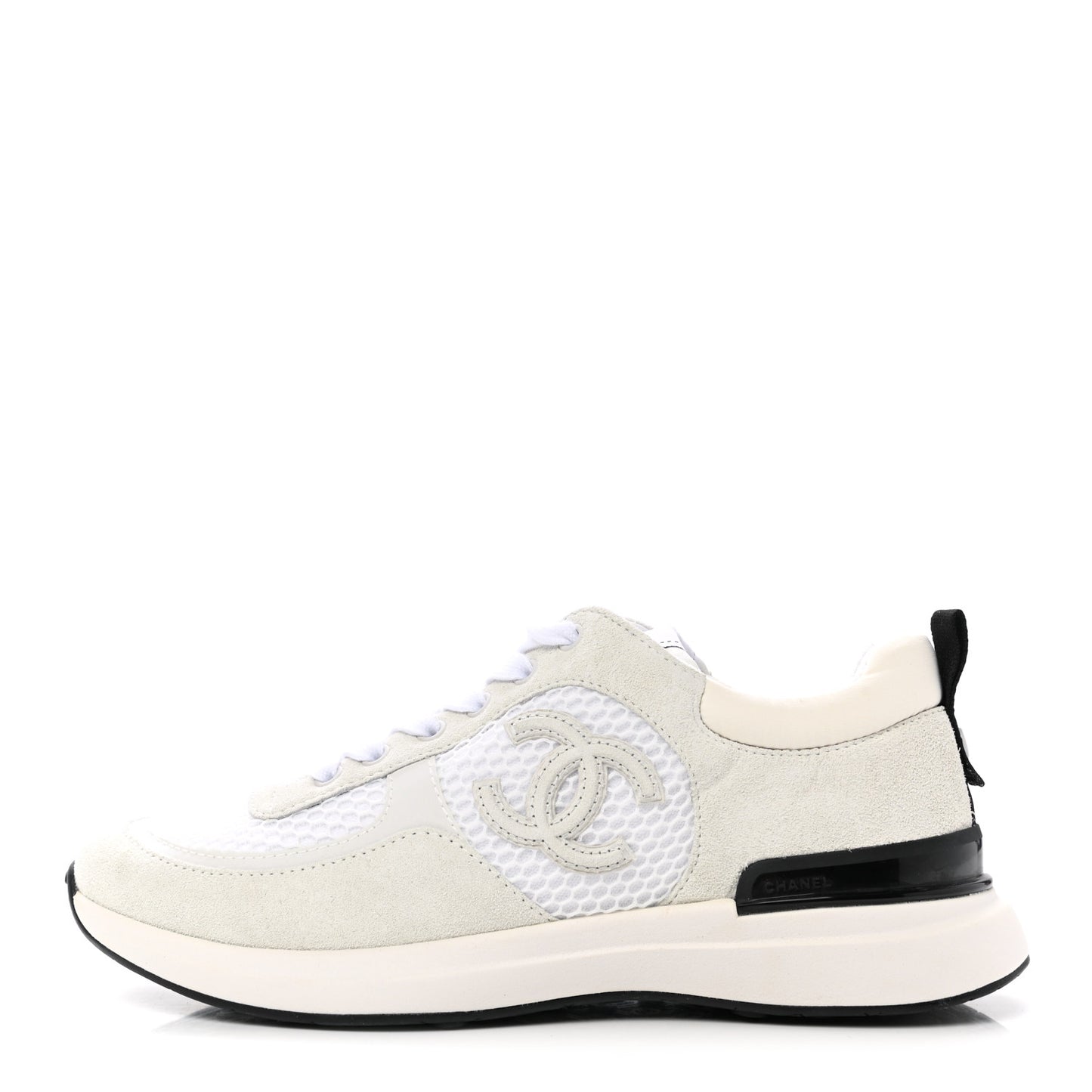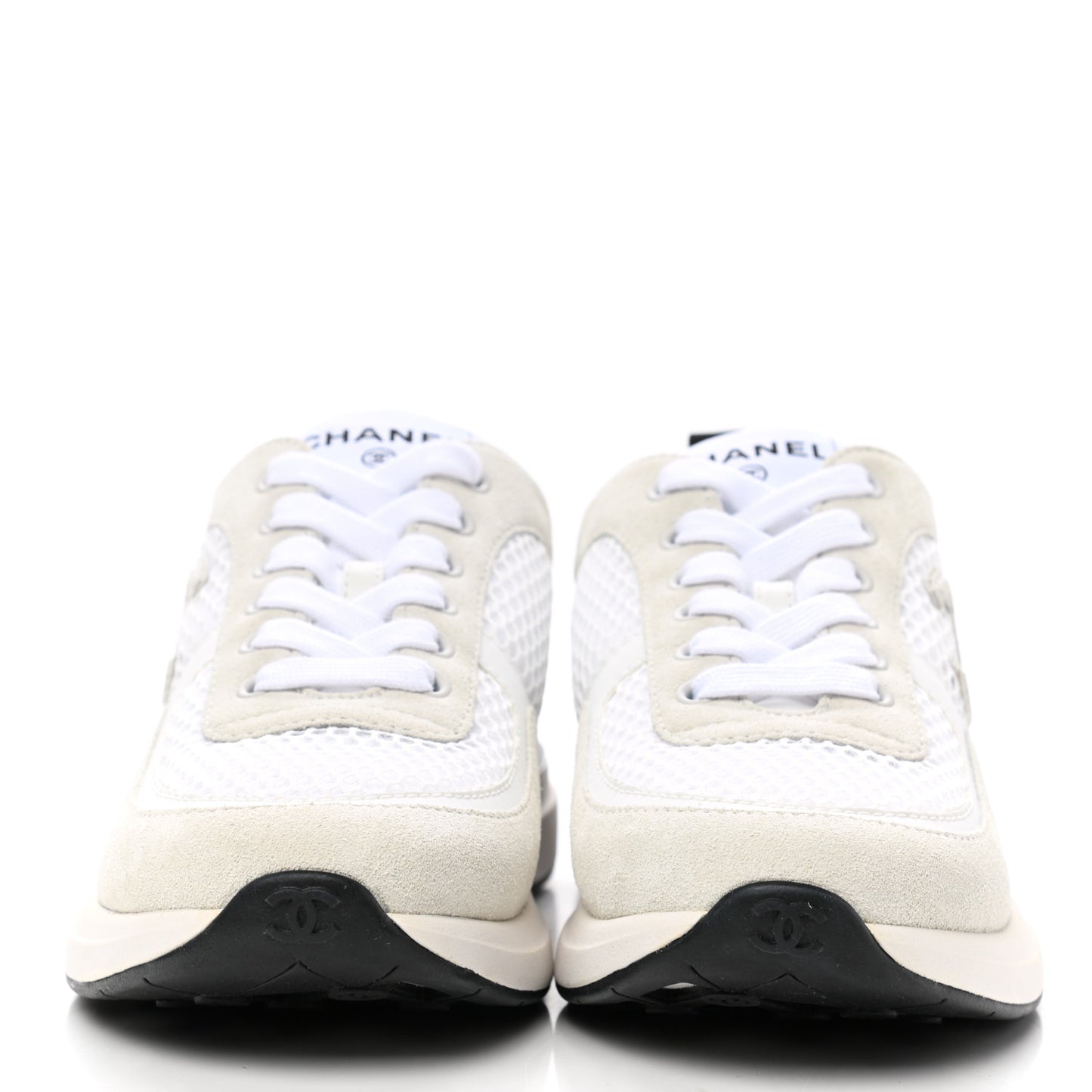 Chanel/ Accessories/ Shoes /Chanel Calfskin Mesh Lycra Suede Womens Logo Sneakers 37 White