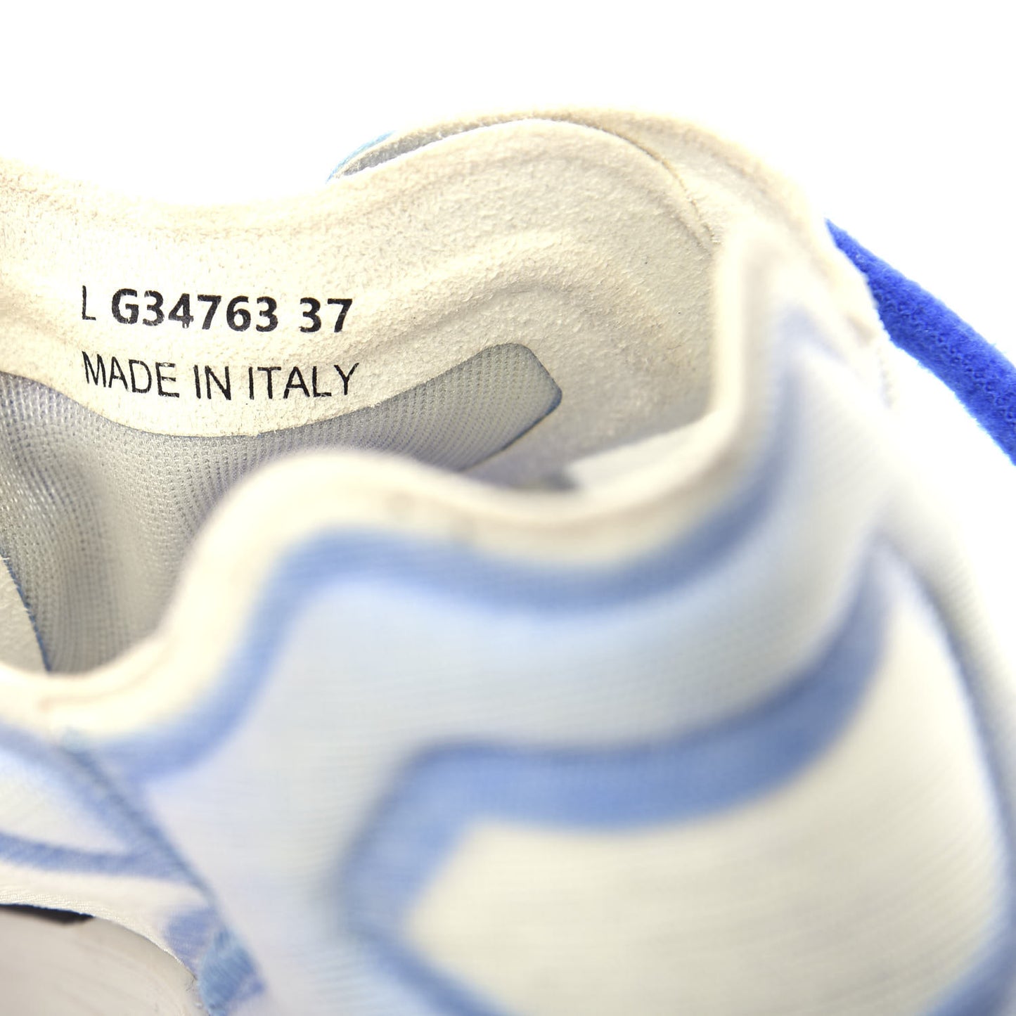 Calfskin Mesh Lycra Womens Logo Sneakers 37 White Blue