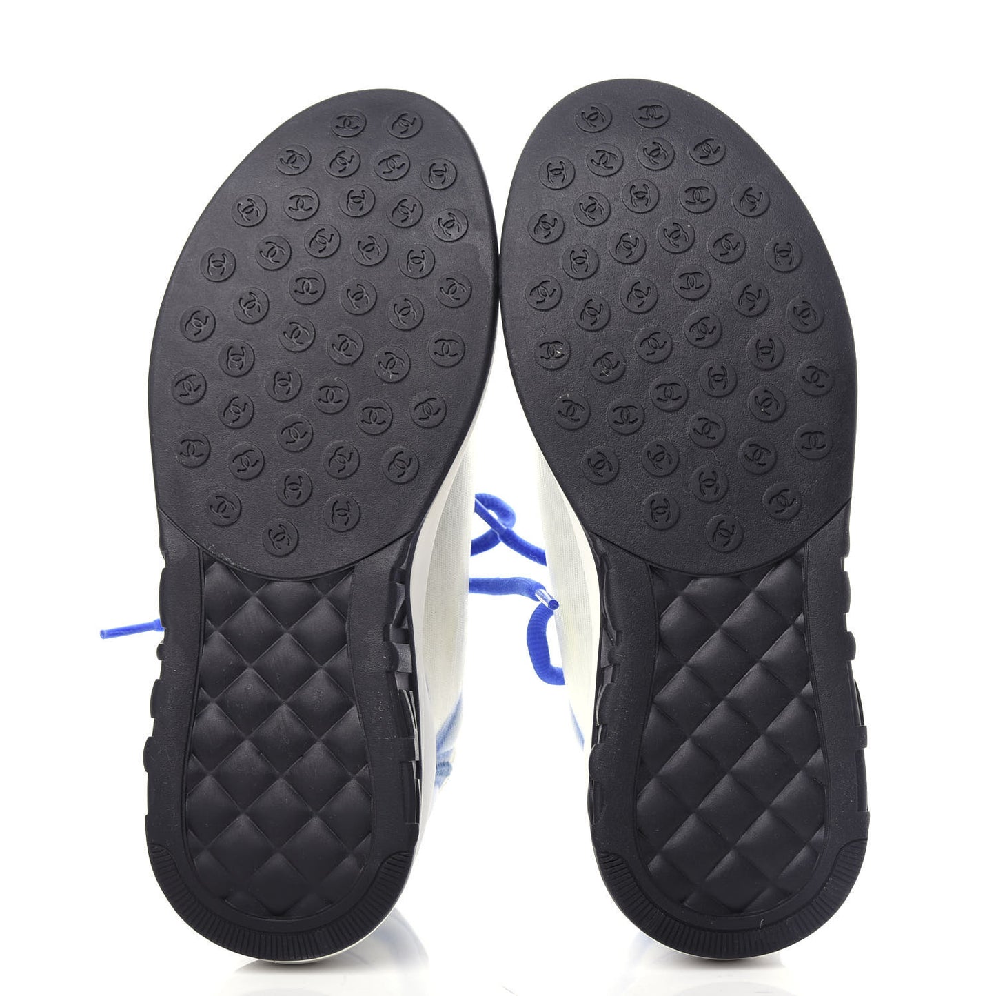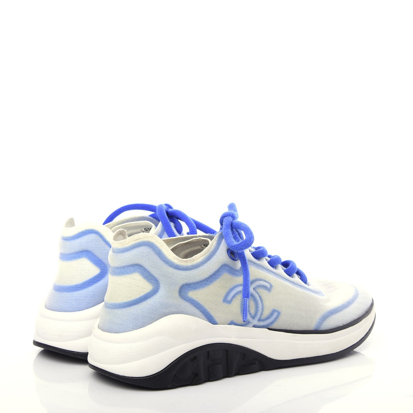 Chanel/ Accessories/ Shoes /Chanel Calfskin Mesh Lycra Womens Logo Sneakers 37 White Blue