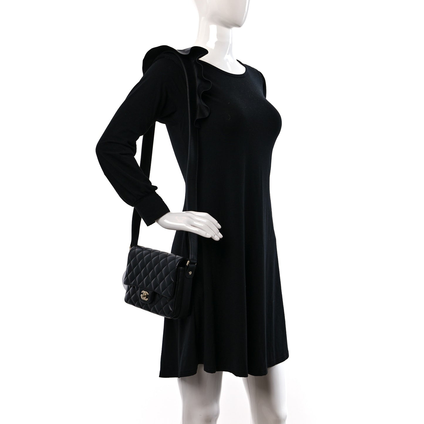 This is an authentic CHANEL Calfskin Quilted Bolero De Chanel Flap Bag in Black. This stylish shoulder bag is beautifully crafted of diamond quilted calfskin leather in light black. The bag features a leather shoulder strap with a matching leather ruffle. The gold turnlock opens to a matching leather interior with pockets.Follow this item for alerts. Chanel is a registered trademark of Chanel. FASHIONPHILE is not affiliated with Chanel.