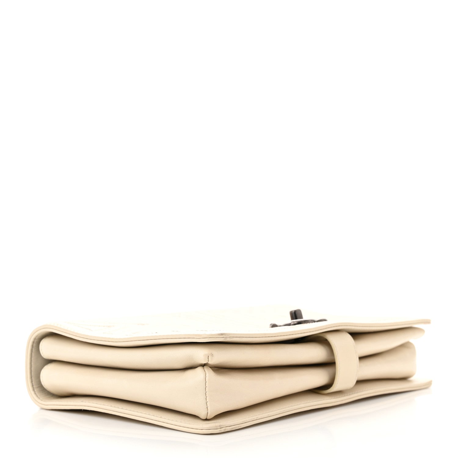 This is an authentic CHANEL Calfskin Quilted Korean Garden Flap in Off White. This stylish flap is crafted of diamond quilted calfskin in off white. The bag features a cross body aged ruthenium chain link shoulder strap with a Chanel CC aged ruthenium front snap plate. The flap opens to a grey fabric interior with a patched pocket.Follow this item for alerts. Chanel is a registered trademark of Chanel. FASHIONPHILE is not affiliated with Chanel.
