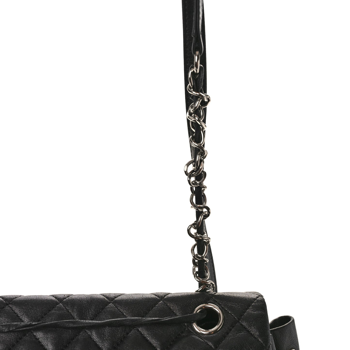This is an authentic CHANEL Calfskin Quilted Large Urban Spirit Backpack in Black. This stylish backpack is beautifully crafted of soft and smooth diamond quilted calfskin leather in black. It features polished silver chain link leather threaded shoulder straps, a facing external flap pocket that opens with a silver Chanel CC turn lock, and a crossover top flap that closes with a cinch cord. This opens to a spacious black fabric interior zipper and patch pockets.Follow this item for alerts. Chanel is a registered trademark of Chanel. FASHIONPHILE is not affiliated with Chanel.