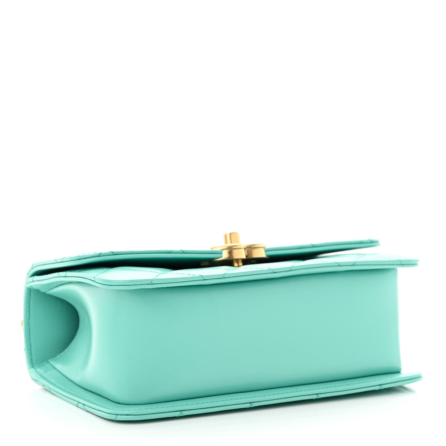 Calfskin Quilted Mini Perfect Fit Flap Turquoise