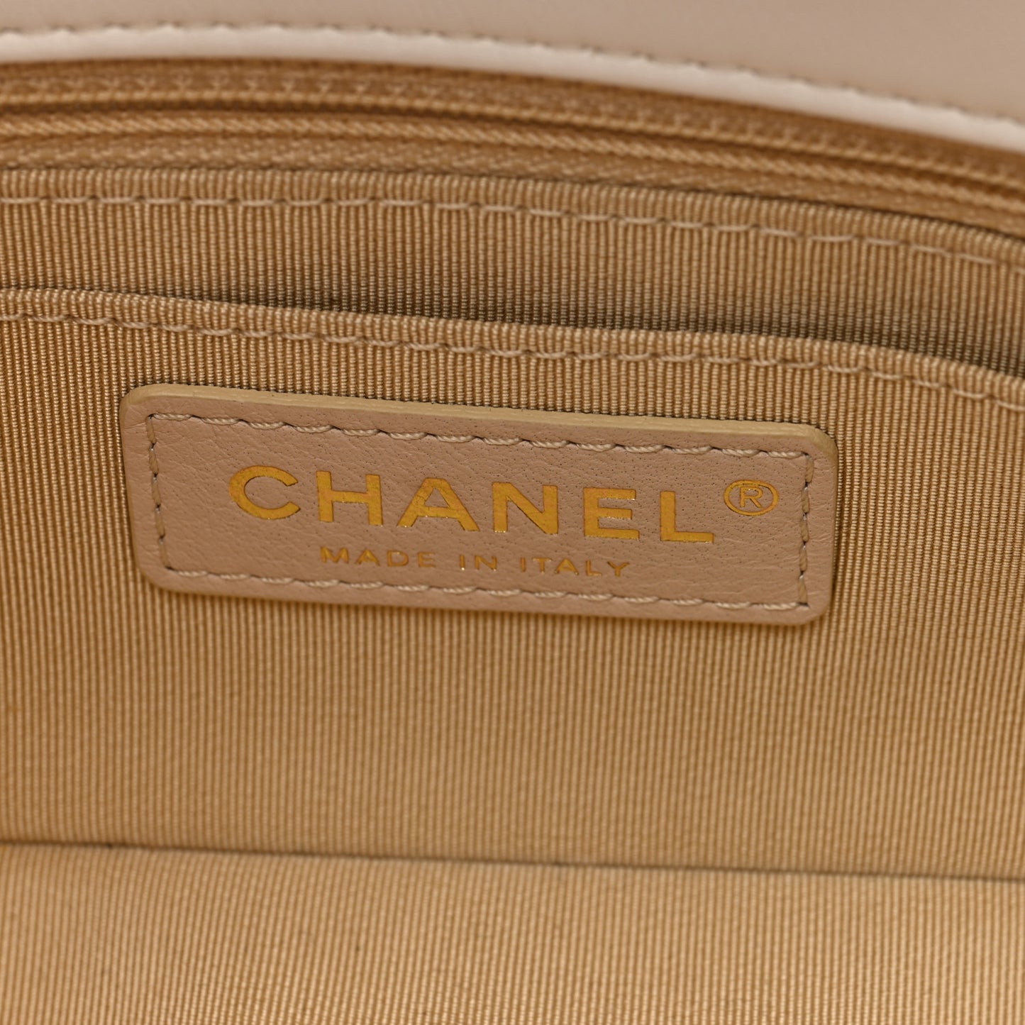 This is an authentic CHANEL Lambskin Quilted Mini Romance Rectangular Flap in White. This classic bag is finely composed of luxurious diamond quilted lambskin leather in white. The bag features a waist-length aged gold chain link leather threaded shoulder strap with a ruffled leather shoulder pad and a matching aged gold Chanel CC turn lock. This opens the front flap to a beige fabric interior with a zipper and patch pockets.Follow this item for alerts. Chanel is a registered trademark of Chanel. FASHIONPHILE is not affiliated with Chanel.