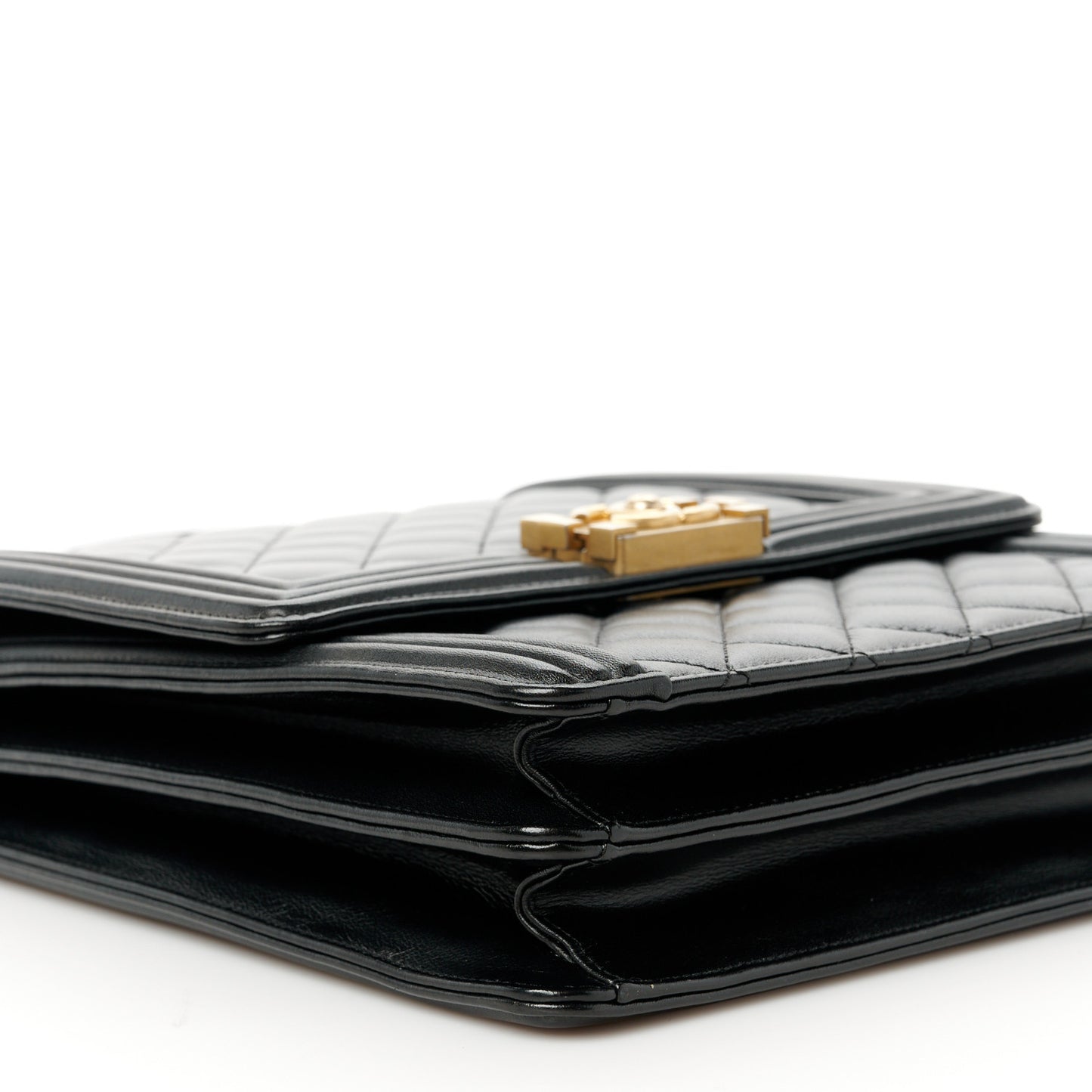 Chanel/ Bags/ Shoulder Bags /Chanel Calfskin Quilted North South Boy Flap Black