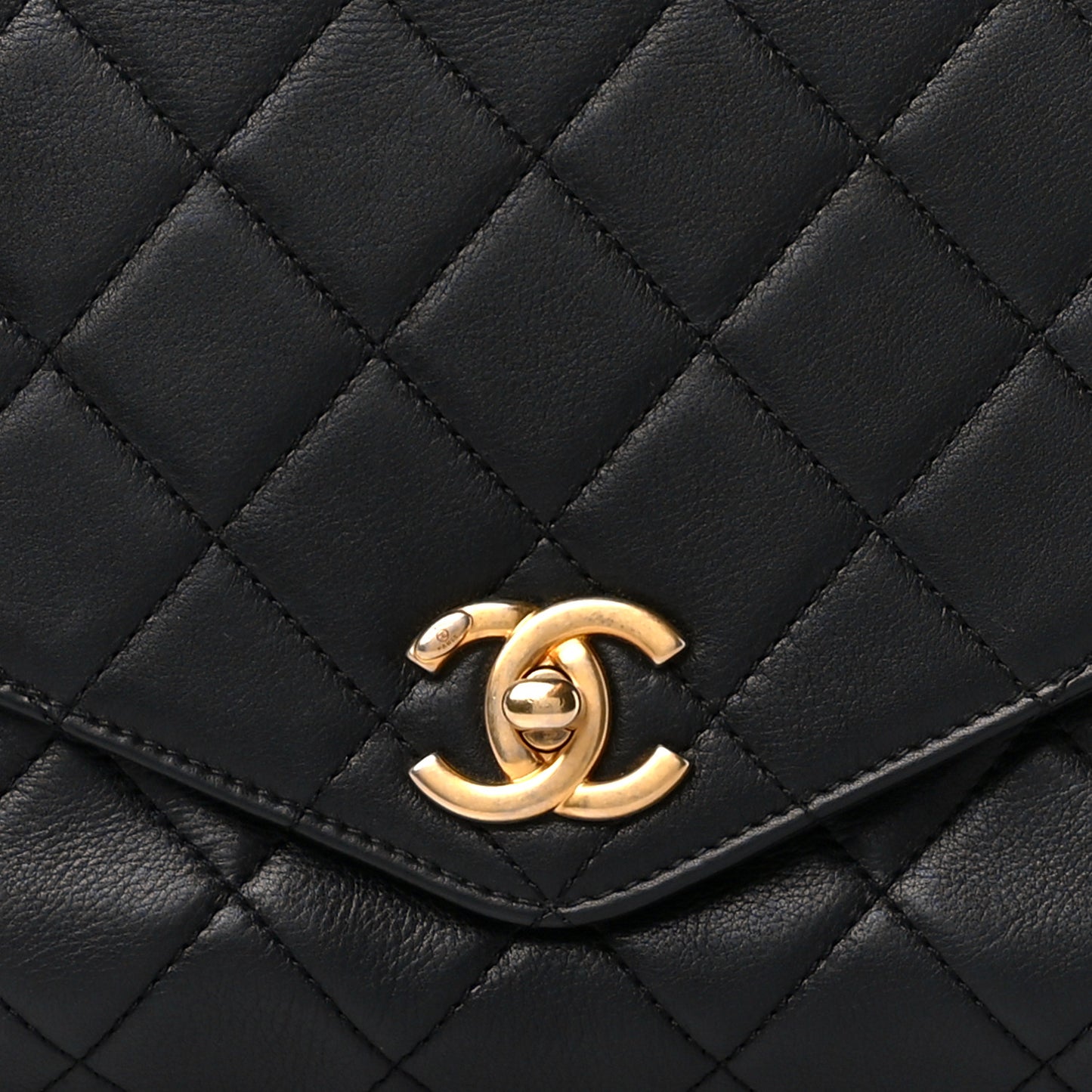 Calfskin Quilted Small Gold Top Handle Flap Black