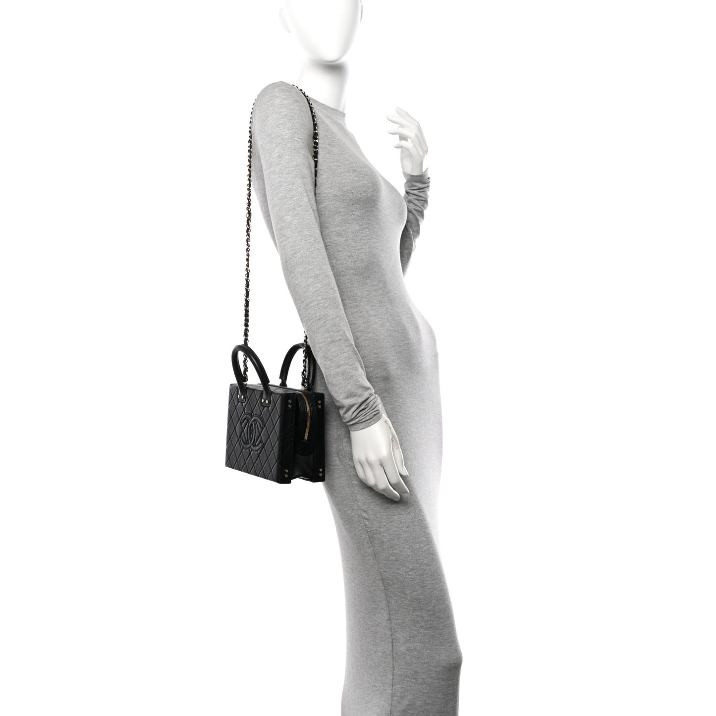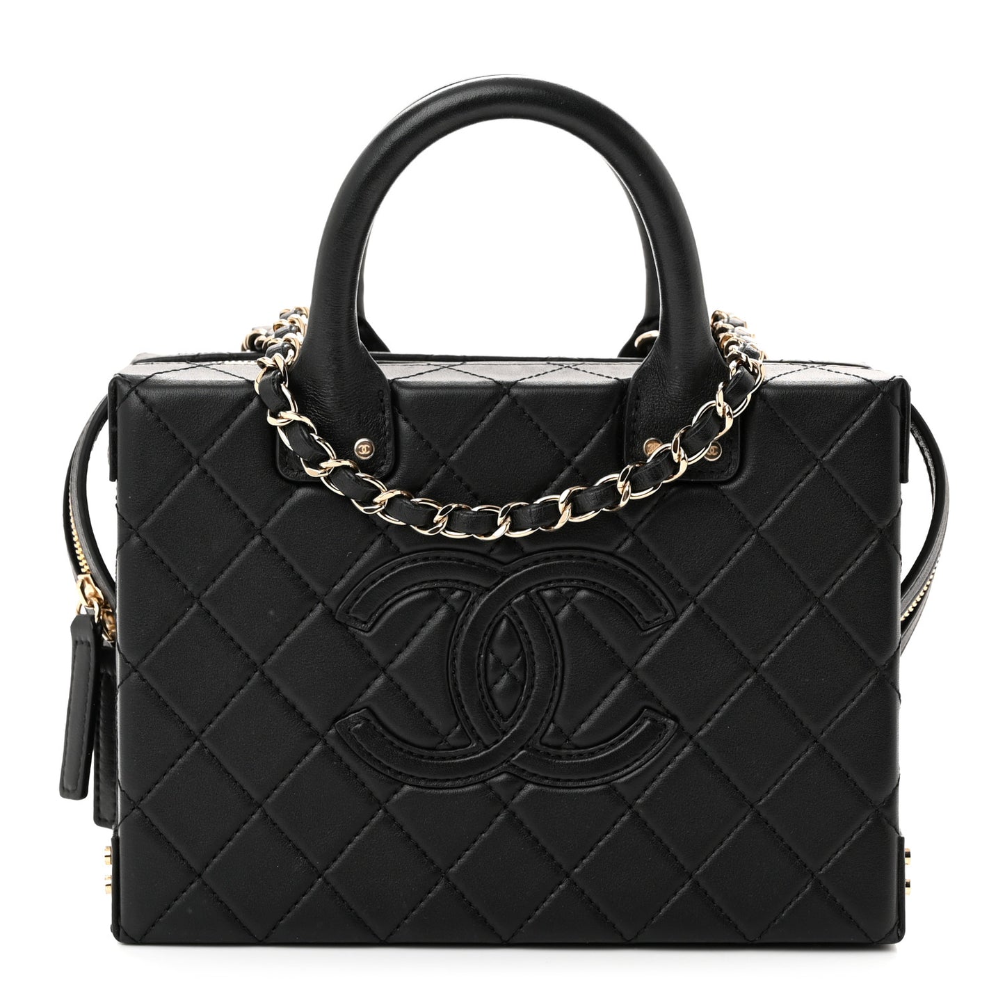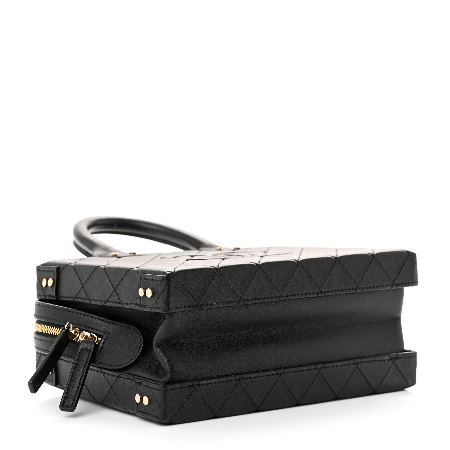 Chanel/ Bags/ Travel & Luggage /Chanel Calfskin Quilted Studded Square Vanity Case Black