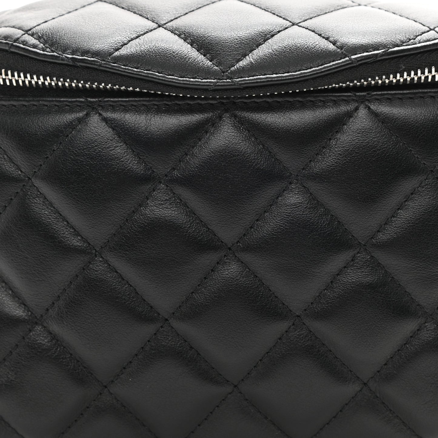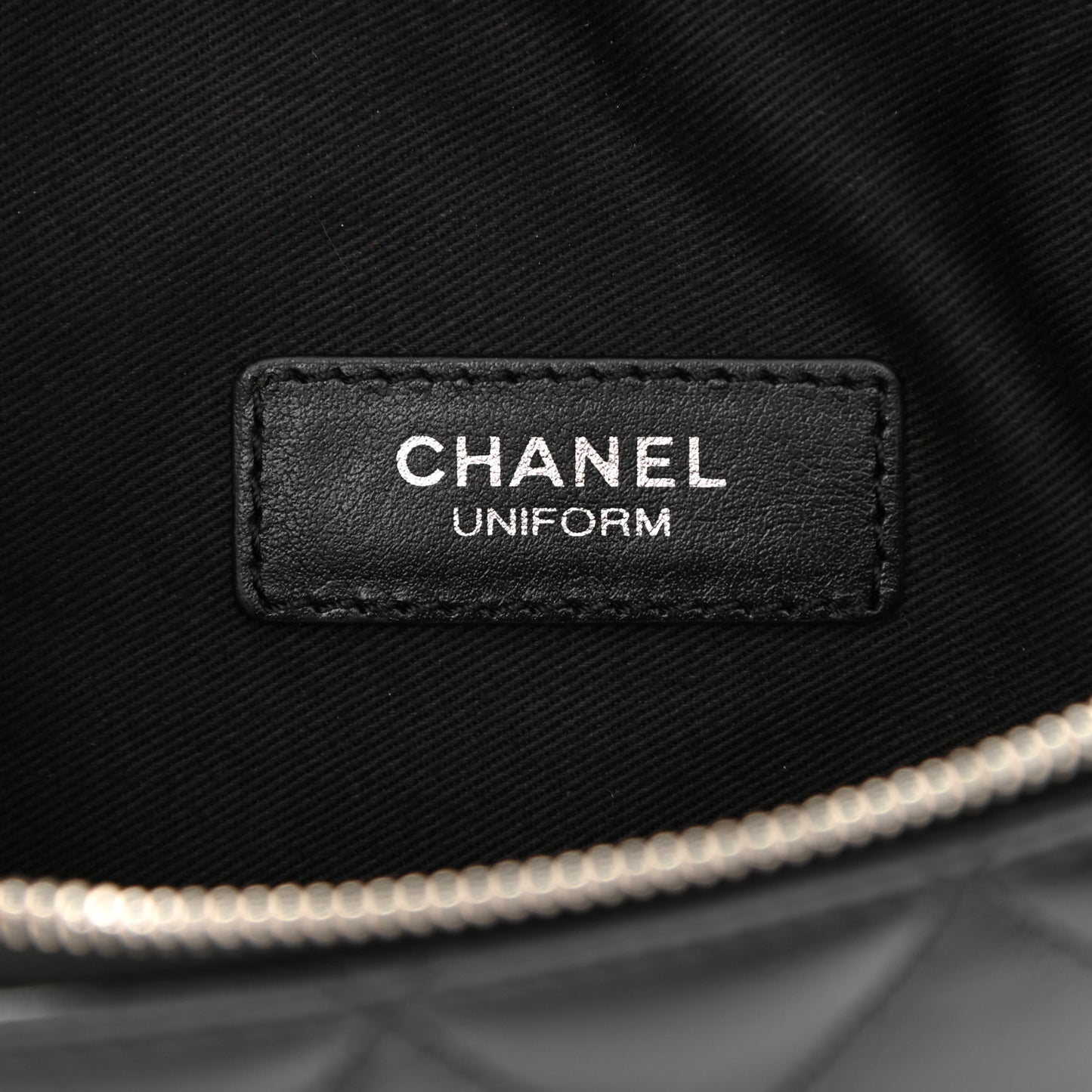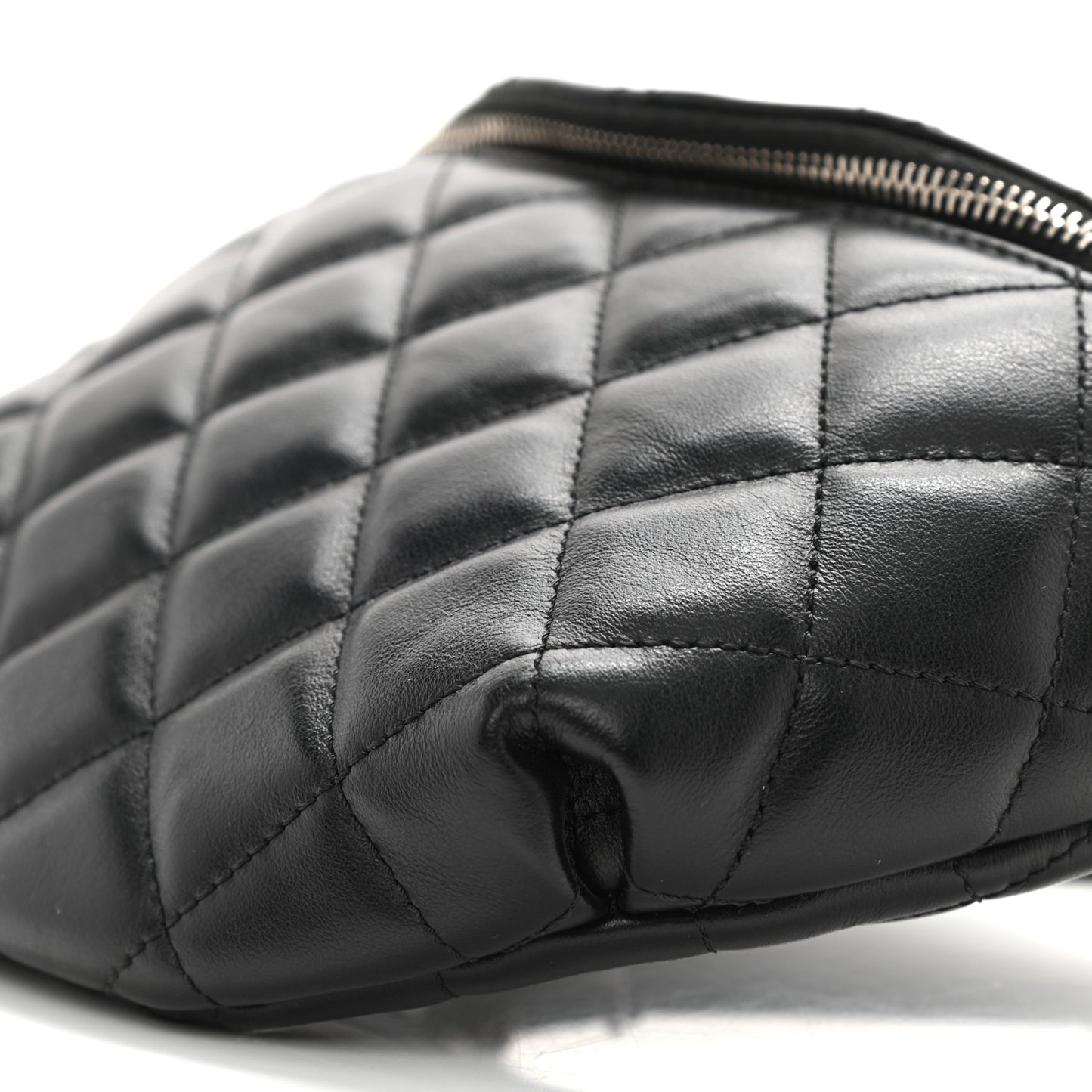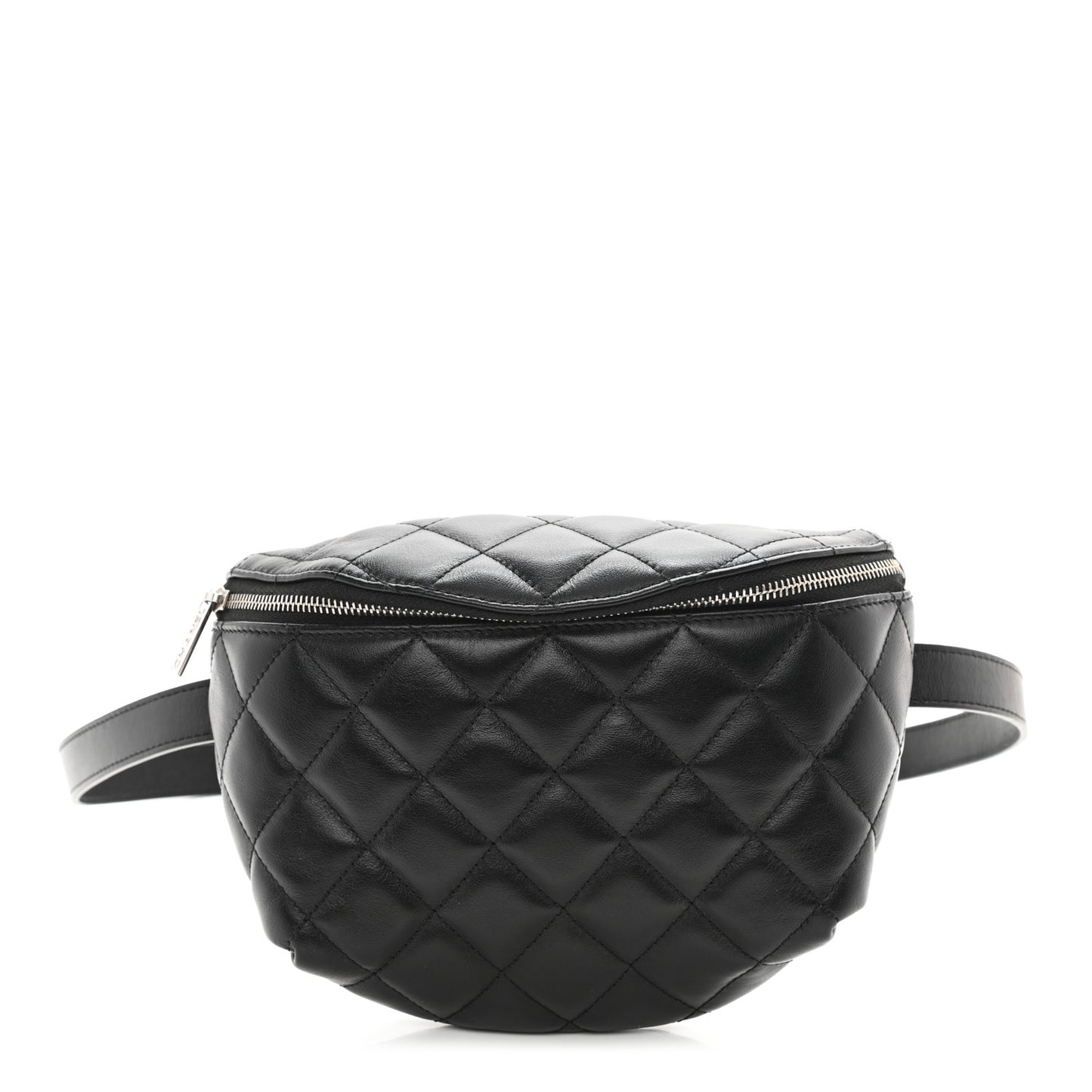 This is an authentic CHANEL Calfskin Quilted Waist Belt Bag in Black. This stylish belt bag is finely crafted of diamond quilted smooth calfskin leather in black. The bag features a back patch pocket zipper pocket, leather belt strap, and the main zipper compartment with a Chanel zipper pull. This opens to a black fabric interior.Follow this item for alerts. Chanel is a registered trademark of Chanel. FASHIONPHILE is not affiliated with Chanel.
