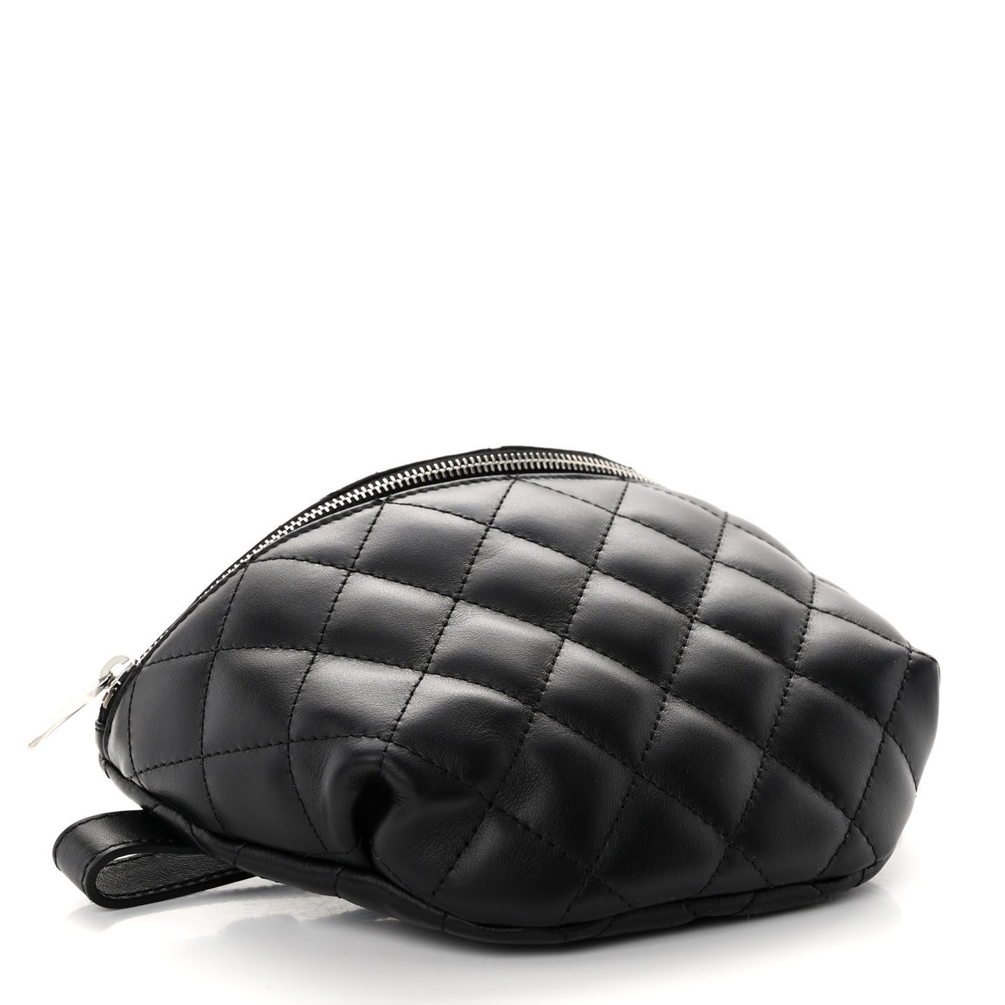 This is an authentic CHANEL Calfskin Quilted Waist Belt Bag in Black. This stylish belt bag is finely crafted of diamond quilted calfskin leather in black. The bag features a leather belt strap, and the main zipper compartment with a silver zipper pull. This opens to a black fabric interior.Follow this item for alerts. Chanel is a registered trademark of Chanel. FASHIONPHILE is not affiliated with Chanel.