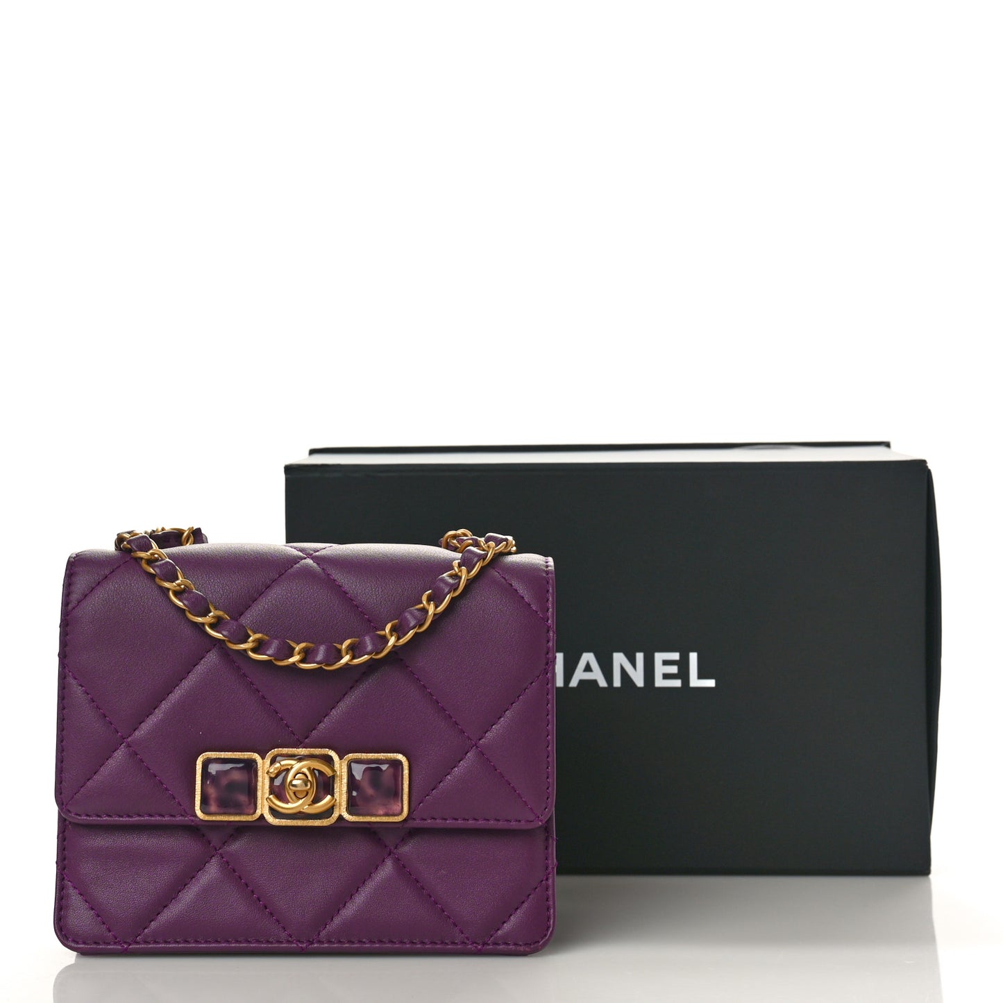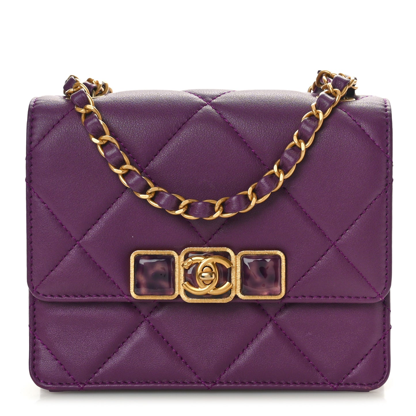 Chanel/ Bags/ Shoulder Bags /Chanel Calfskin Resin Quilted Mini Flap Purple