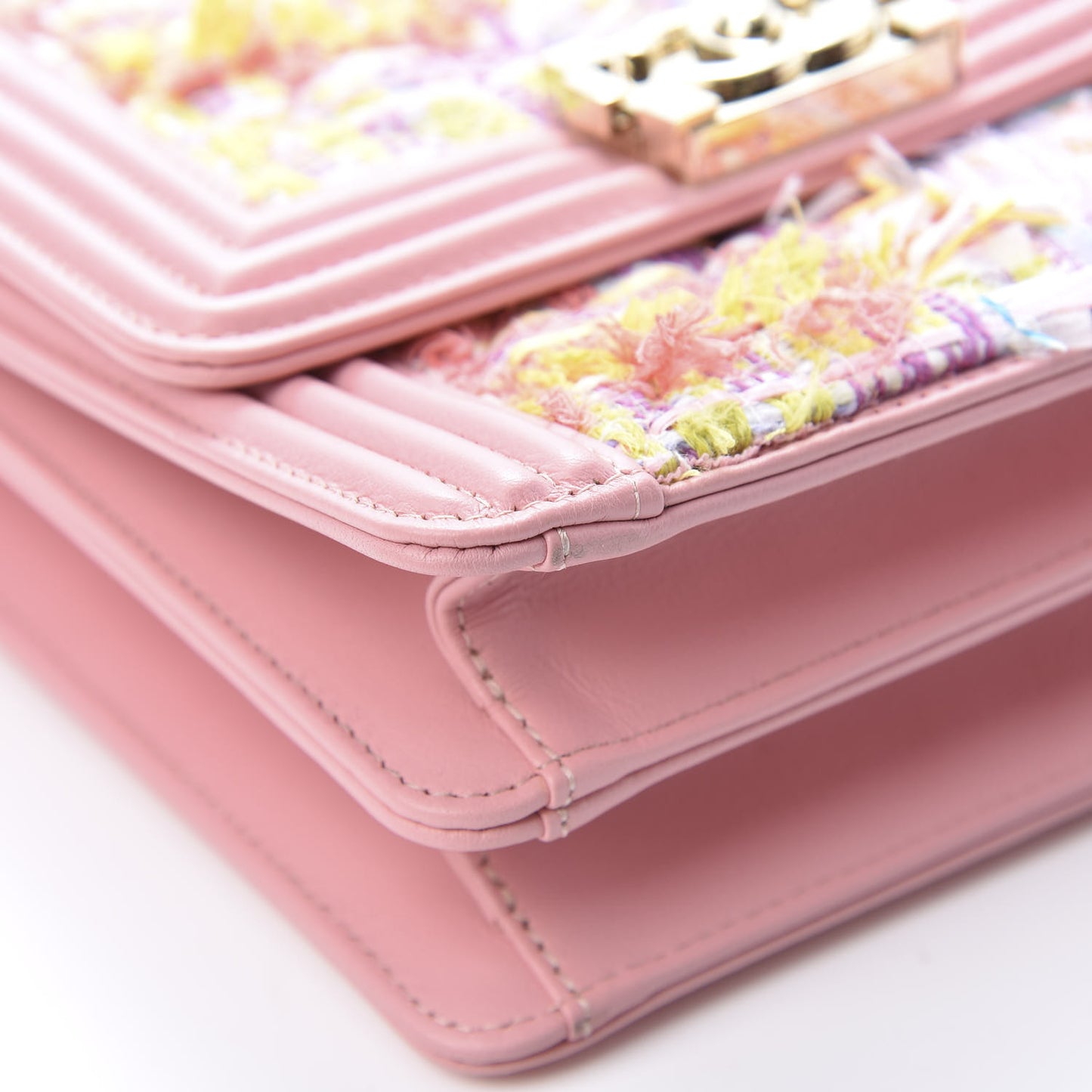 Chanel/ Bags/ Shoulder Bags /Chanel Calfskin Tweed Quilted North South Boy Flap Pink