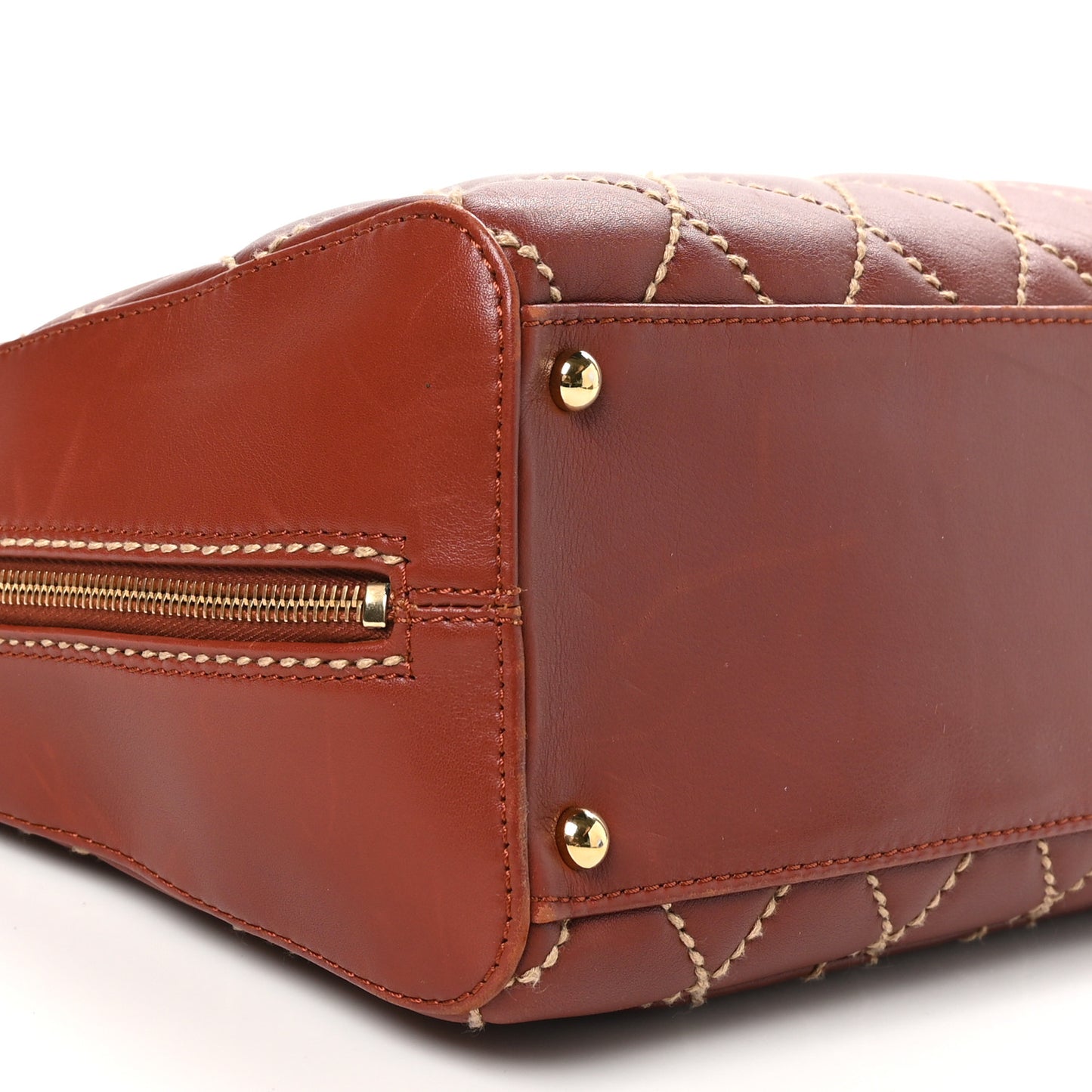 Calfskin Wild Stitch Vertical Top Handle Bag Brown