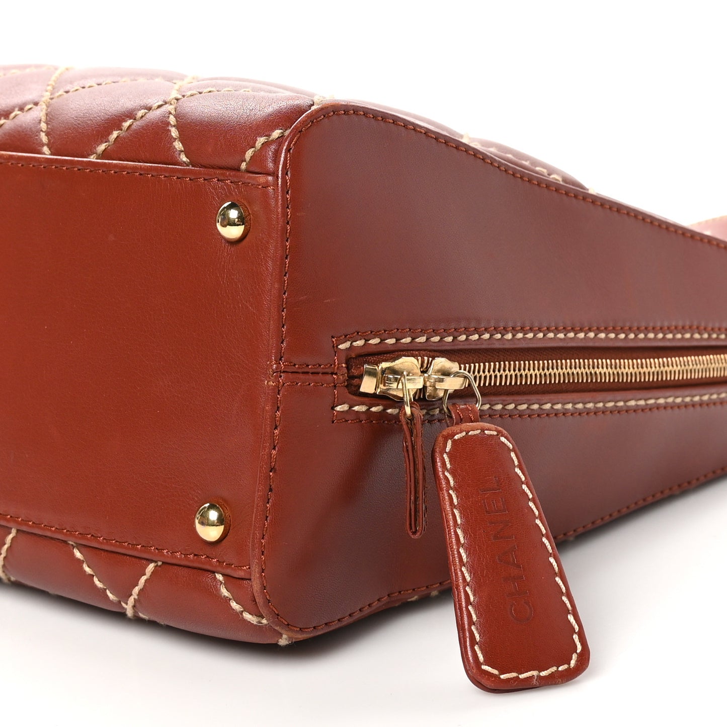 Chanel/ Bags/ Shoulder Bags /Chanel Calfskin Wild Stitch Vertical Top Handle Bag Brown