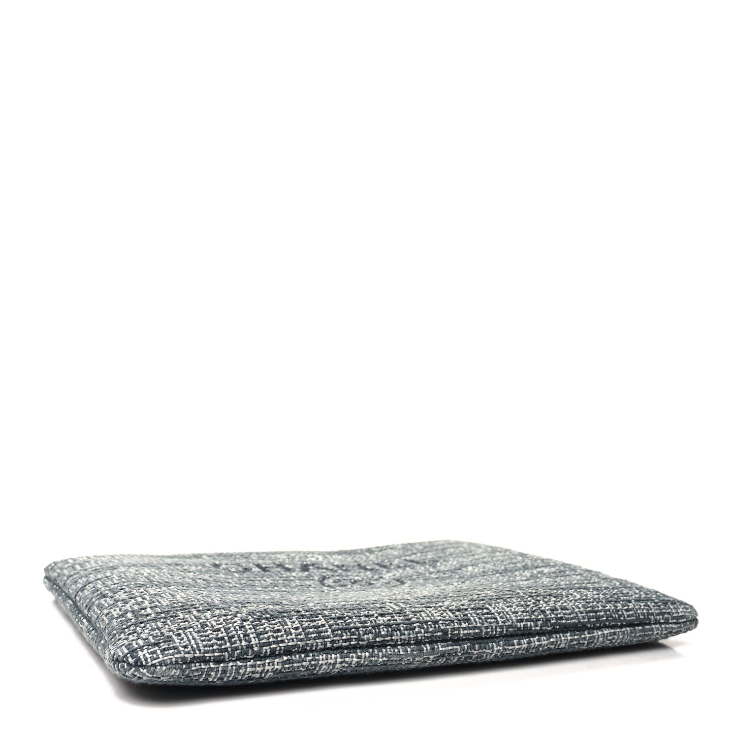 This is an authentic CHANEL Canvas Medium Deauville Cosmetic Pouch in Grey. This chic extra-large clutch is crafted in grey canvas with a grey CHANEL logo on the front. The top silver zipper opens to a quilted black nylon fabric interior.